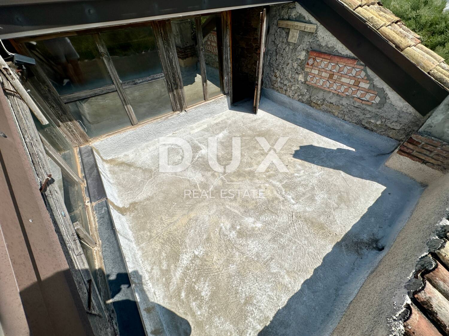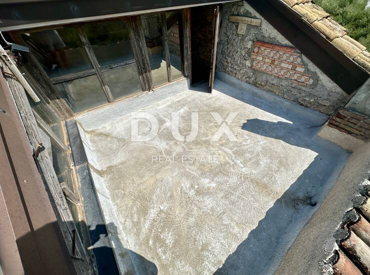 Unutarnjim stepenicama izlazi se na krovnu terasu s koje se pruža otvoren panoramski pogled na zelenilo, prirodu i more u daljini – idealno mjesto za opuštanje, kreativnost ili druženja uz zalazak sunca.