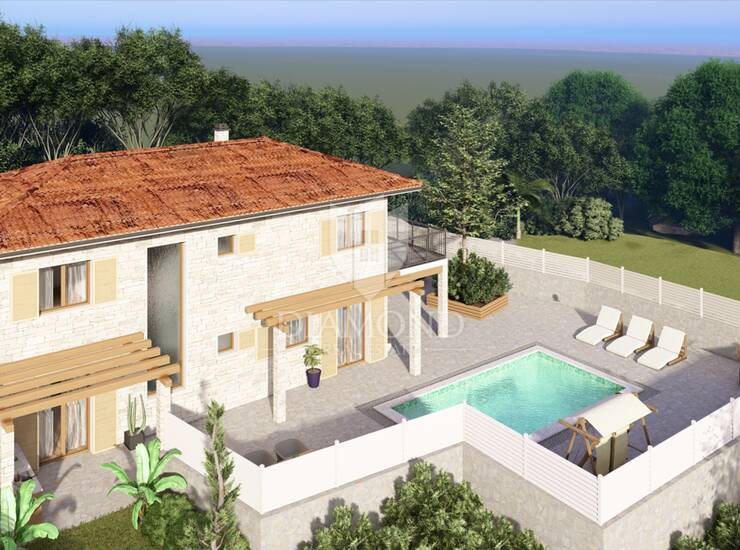 Predviđena rekonstrukcija uključuje izgradnju privatnog bazena i uređenje eksterijera kako bi se stvorio skladan prostor za opuštanje u miru istarskog krajolika.