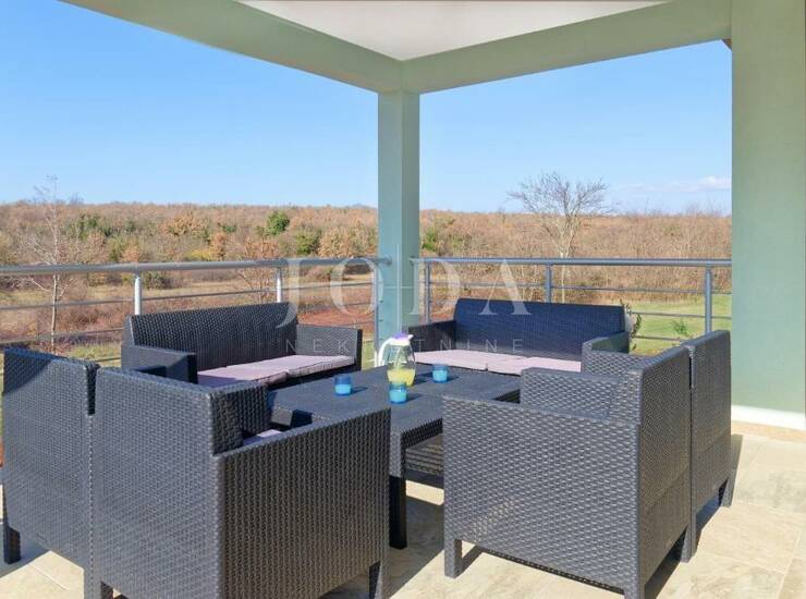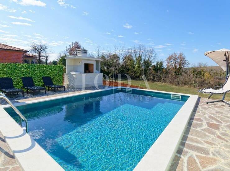 Ova prekrasna nekretnina, samostojeća je novoizgrađena kuća smještena usred mirnog istarskog krajolika i idealna je za sve one koji vole mir i tišinu.