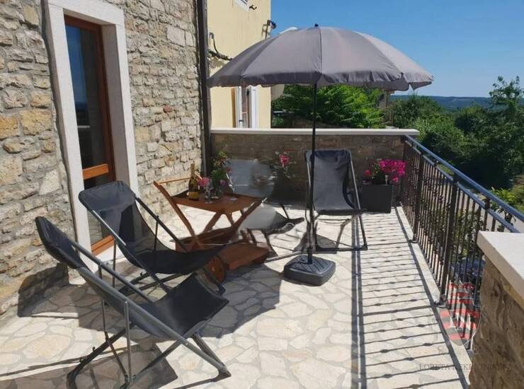 Smještena u šarmantnom selu nekoliko kilometara od Buja, ova prekrasno renovirana kamena kuća nudi izvanrednu priliku za život ili investiciju. S prostranim terasama i zadivljujućim panoramskim pogledom na istarske brežuljke i more, ovo je rijetka nekretnina na tržištu.