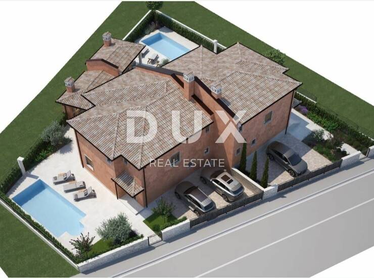 Momjan, okolica! Dvojna kuća sa bazenom u novogradnji!
