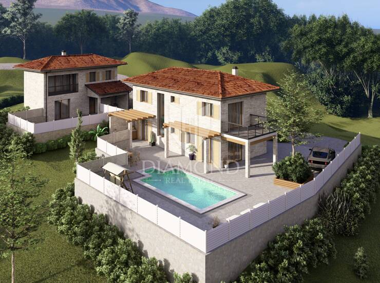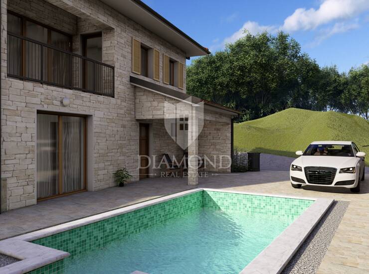 Momjan, kuća 110 m2 u sa bazenom, u izgradnji