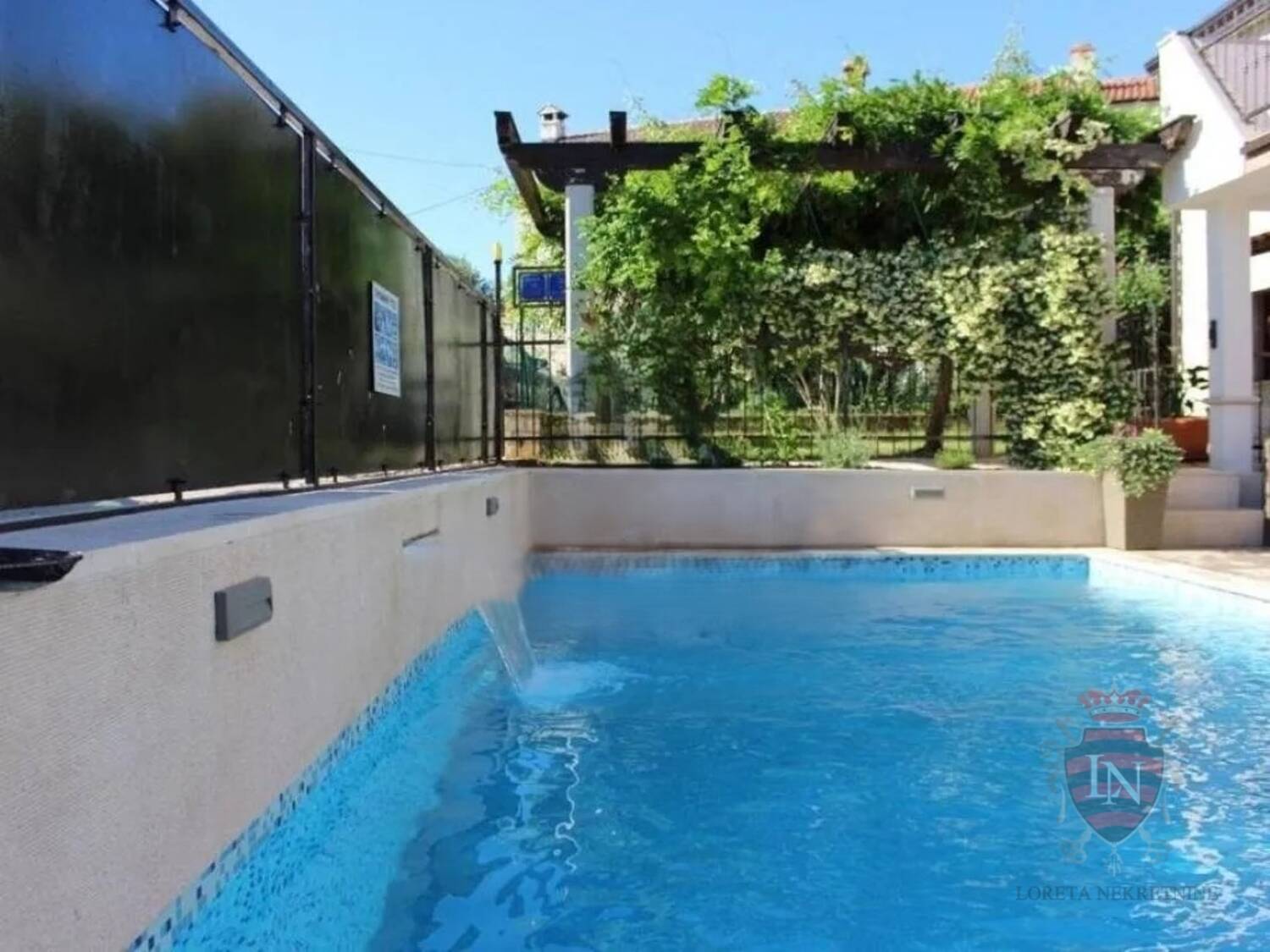Nekretnina uključuje ograđeno dvorište s prostranom ljetnom kuhinjom i dodatnom manjom kućom, idealnom za zimska okupljanja. Prednji dio kuće ističe bazen od 23m2, koji dodaje šarm i privlačnost nekretnine.
