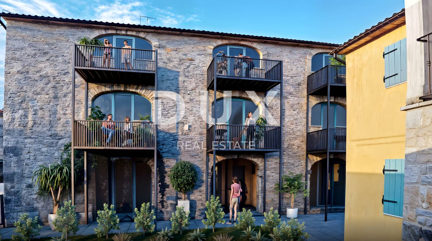 U malom selu smještenom nadomak gradića Buje, nalazi se dvojna kamena stambena zgrada koja se proteže kroz prizemlje i dva kata te sadrži sveukupno osam stambenih jedinica. U adaptaciji su se koristili trajni i pouzdani materijali koji jamče dugoročno zadovoljstvo i sigurnost stanovanja.