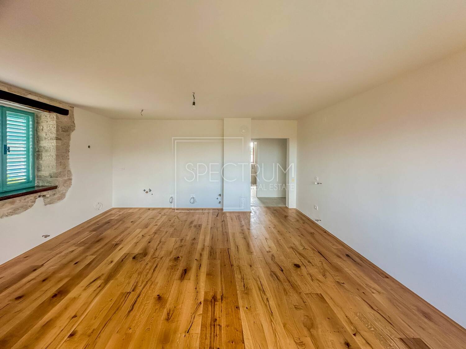 Stan se prodaje djelomično namješten (završene sanitarije, podovi (hrastov parket) i postavljena kuhinja). Stan se može kompletno opremiti, ovisno o želji novog vlasnika.
