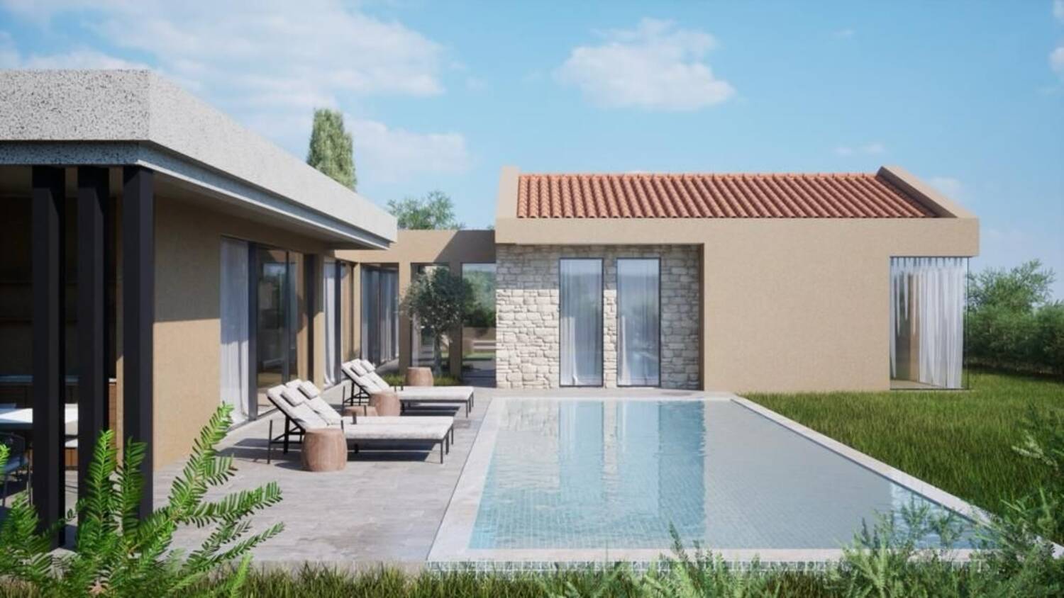 Nedaleko Buja i slovenske granice, na prodaju je građevinsko zemljište s građevinskom dozvolom za izgradnju pet prizemnice s bazenom.