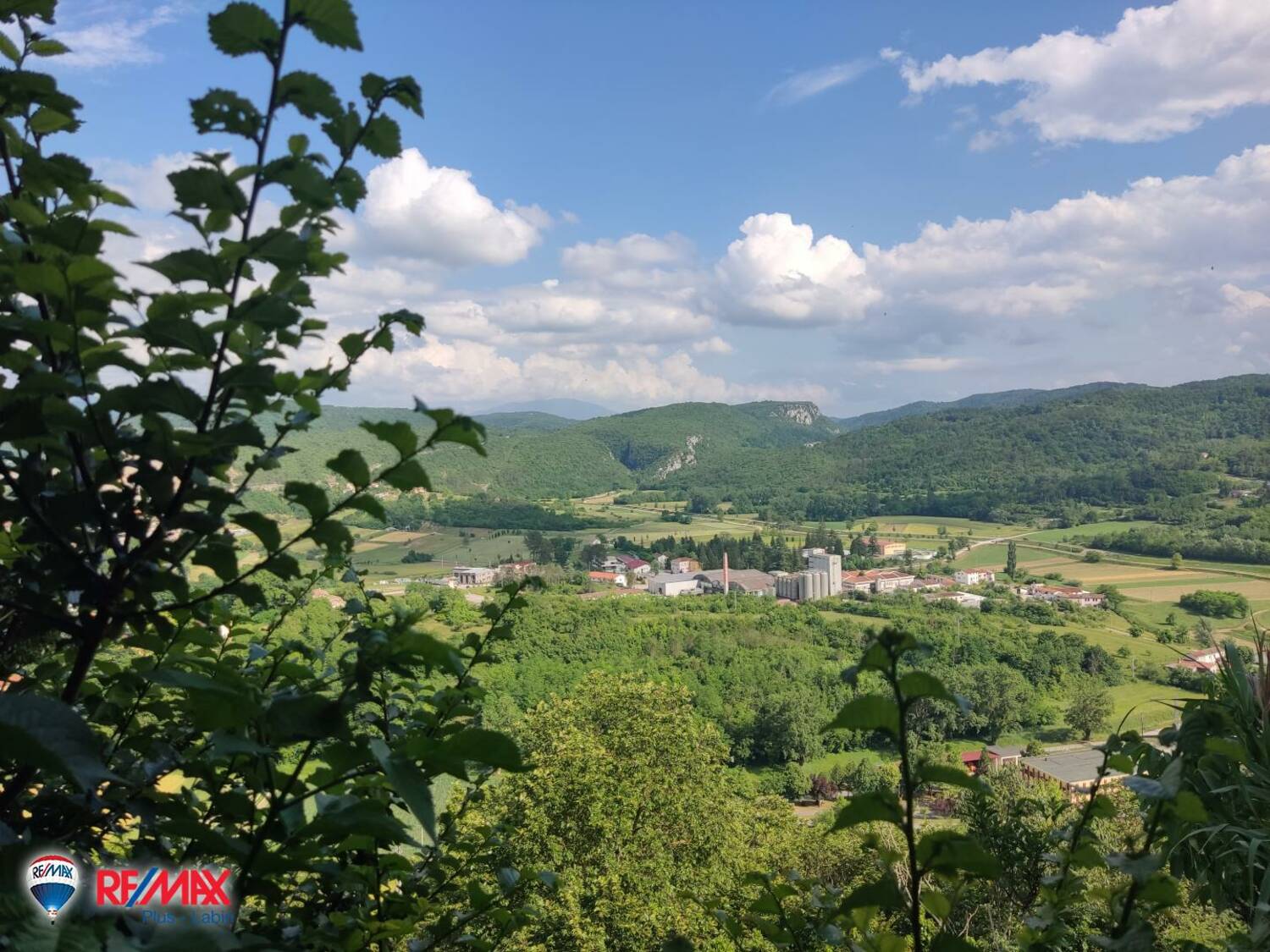 dvije kamene kuće povezane unutarnjim dvorištem popločenim stoljetnim kamenim pločama i natkrivena terasa sa prekrasnim pogledom na okolna brda i doline.