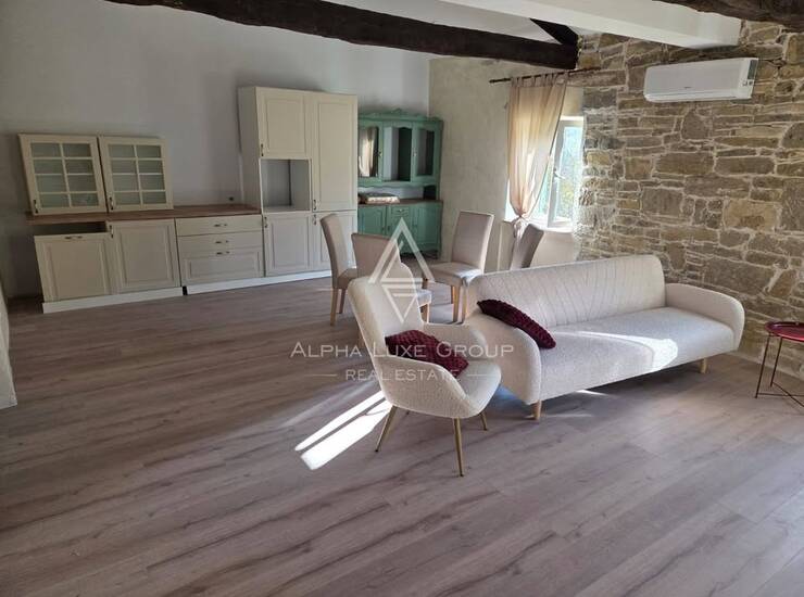 U mirnom istarskom naselju Sovinjak prodaje se potpuno obnovljena samostojeća kamena kuća koja pruža privatnost, udobnost i autentičan istarski ugođaj okružen prirodom i zelenilom. Nekretnina raspolaže s 95 m² neto stambene površine i 135 m² bruto površine, uz ograđeno dvorište od 200 m² te dodatnu parcelu od 350 m² u neposrednoj blizini, što omogućuje brojne mogućnosti za opuštanje ili buduće uređenje.
