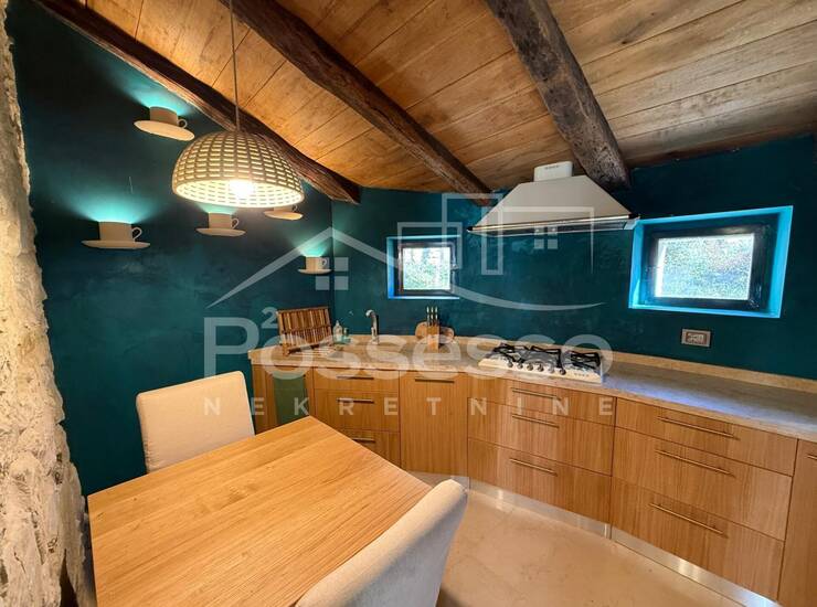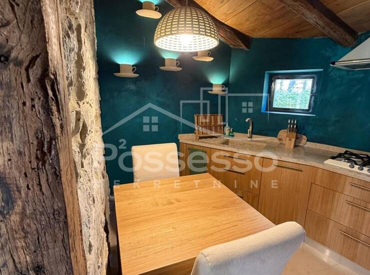 U prizemlju se nalazi prostrani i izuzetno ugodan dnevni boravak s kaminom, povezan s kuhinjom, kao i manja kupaonica.Na prvom katu smještena je spavaća soba, garderoba te druga kupaonica, pružajući maksimalnu udobnost i funkcionalnost.