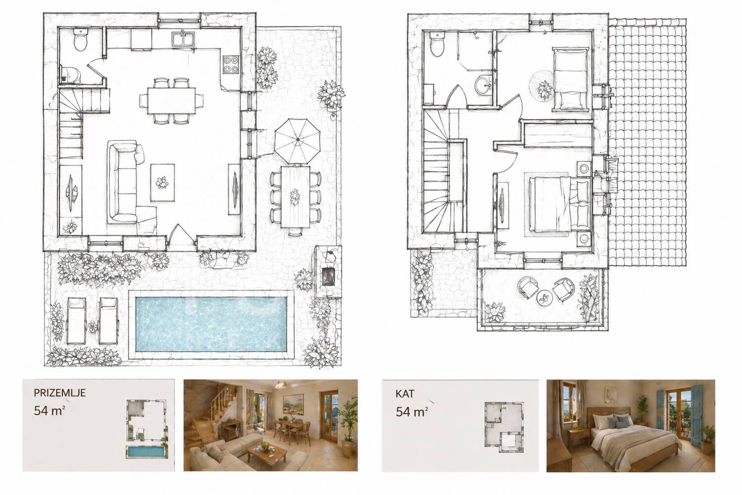 izgradnja bazena dodatni stambeni objekt (kuća ili apartman) formiranje privatnog imanja za odmor ili turističku namjenu Postojeći kameni objekt pruža idealnu osnovu za: