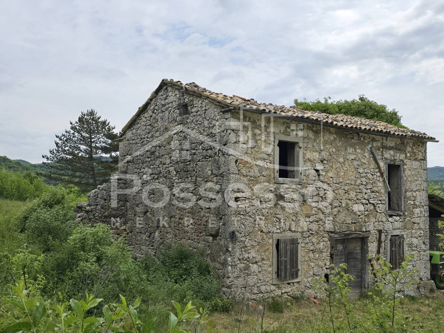 Kameni objekt tlocrtne površine 54 m² Etažnost: prizemlje + kat Status: gospodarski objekt (mogućnost prenamjene u stambeni prostor) Ukupna površina zemljišta: 824 m² (građevinsko) 3 direktna pristupna puta Infrastruktura uz parcelu (struja, voda, kanalizacija) Lokacija i okruženje