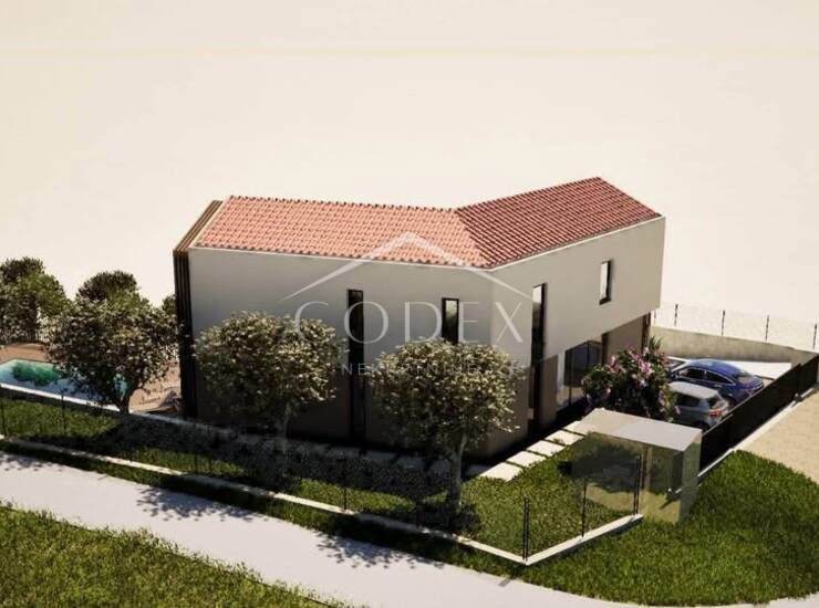 ISTRA, Hum, prodaje se građevinsko zemljište površine 848 m2. Infrastruktura (voda, struja, optika) su na terenu. Dobiveni uvjeti za gradnju, pravomoćna građevinska dozvola, svi elaborati su plaćeni, isto tako i idejni i glavni projekt. Uokolo terena su tereni s projektima za vile s bazenima. Teren se nalazi na mirnoj sunčanoj poziciji, okruženoj prirodom.