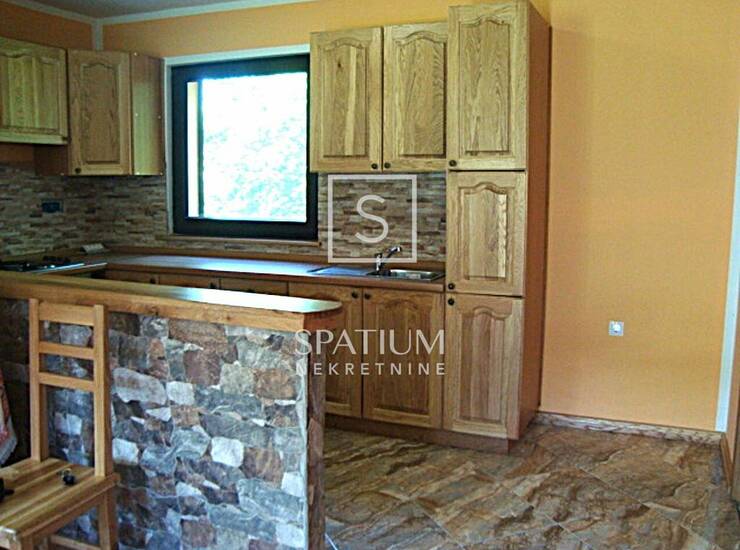 Kuća se sastoji od prizemlja i visokog potkrovlja tlocrtne površine 66m2. U prizemlju nalazimo kuhinju s dnevnim boravkom i blagovaonicom dok su se u visokom potkrovlju smjestile dvije prostrane sobe s izlazom na balkon i kupaonica. Okućnica od 466m2 je uređena i ograđena te se na njoj nalaze i dva natkrivena parkirna mjesta. Kuća je sagrađena 2020.g, ima thermo fasadu, limeni krov sa snjegobranima, kompletno je namještena i kao takva se i prodaje. Nekretnina ima sve priključke (struja, voda internet..) kao i kompletnu dokumentaciju (uporabnu dozvolu, energetski certifikat, vlasnički list bez tereta) . Nalazi na mirnom mjestu u netaknutoj prirodi u blizini nacinalnog parka Risnjak (3km od izvora rijeke Kupe).