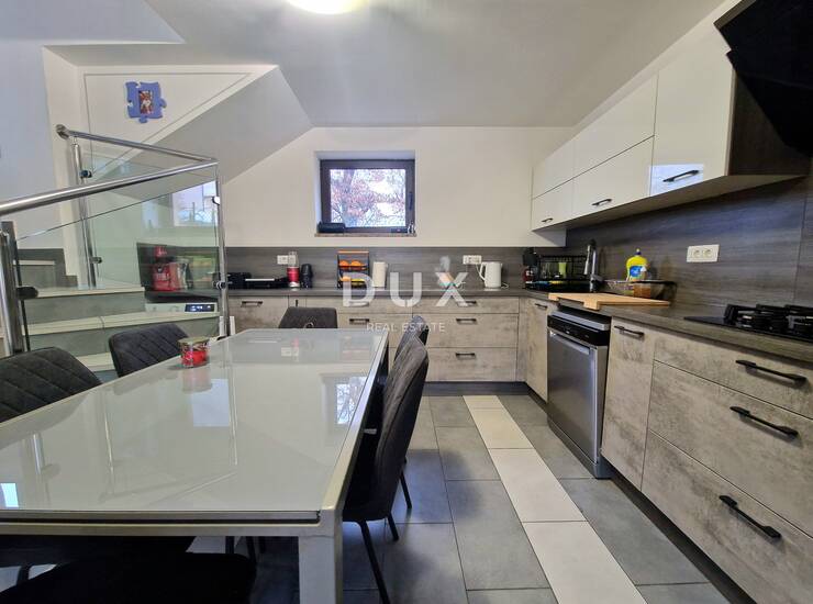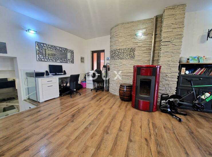 U prizemlju se nalazi stan površine 60 m², rasporeda 1S+DB, funkcionalno uređen i ugodan za svakodnevni boravak. Na prvom i drugom katu smješten je prostrani dvoetažni stan ukupne površine 120 m², rasporeda 2S+DB, koji nudi obilje svjetla, komfora i privatnosti. Kuća je kompletno uređena i u potpunosti namještena te ne zahtijeva nikakva dodatna ulaganja – spremna je za useljenje odmah.
