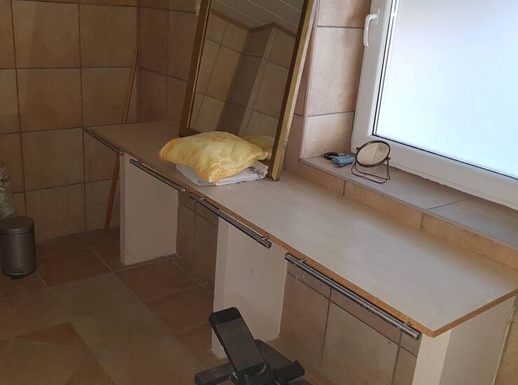 U suterenu se nalaze konoba, spremište i kotlovnica,garaža,i stan ukupno 120m2