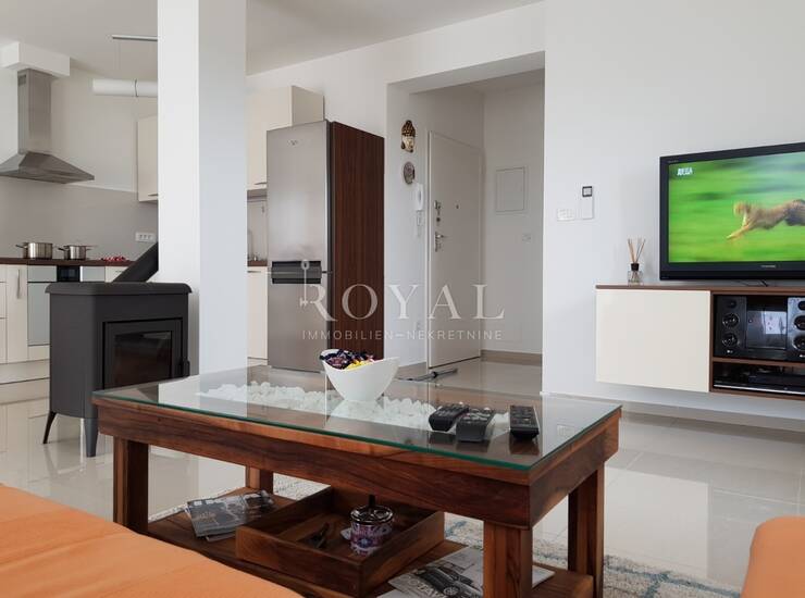 Stan je izgrađen 2014. godine, ima energetski razred A+ te se sastoji od predsoblja, dvije spavaće sobe, kupaonice, kuhinje s blagovaonicom, dnevnog boravka i dvije polulođe. Ukupna korisna površina stana iznosi 73 m² i predstavlja 330/1000 suvlasničkog udjela zgrade. Nekretnina je namještena, useljiva odmah i urednog vlasništva.