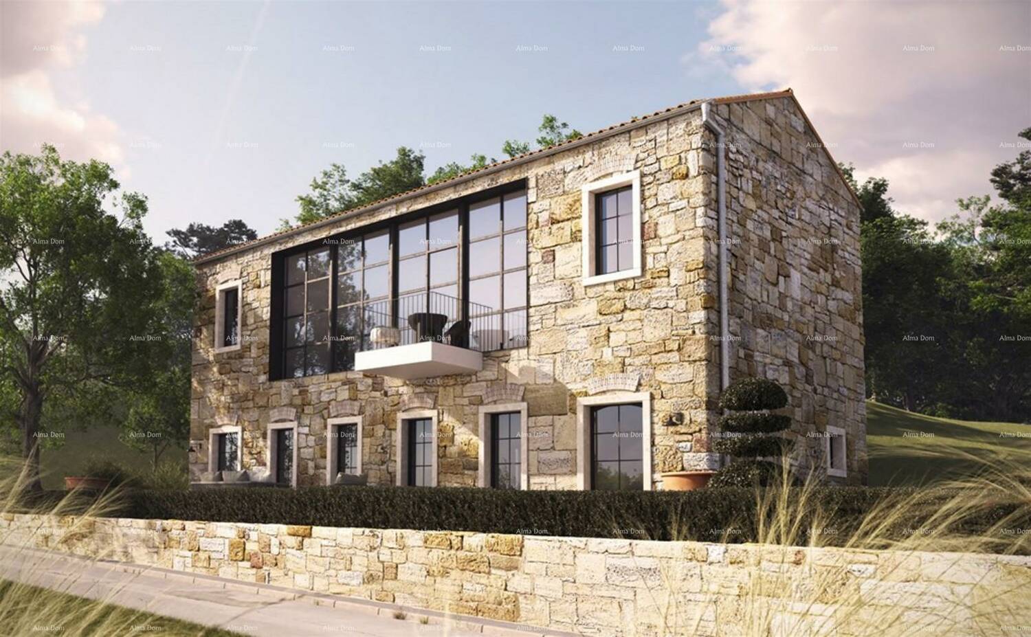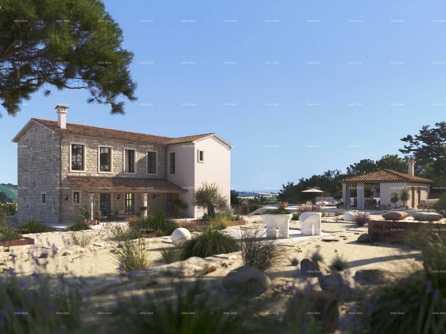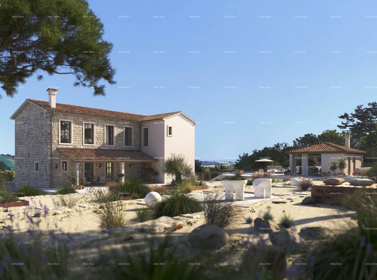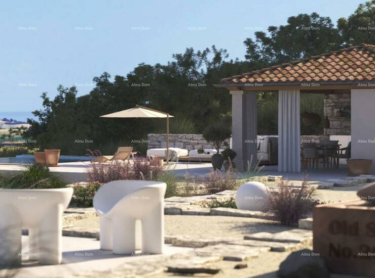 Ova elegantna nekretnina pruža spektakularan panoramski pogled na okolne brežuljke, istarsku prirodu, a za vedrih dana i na otok Cres i more.