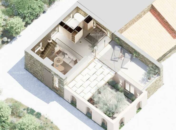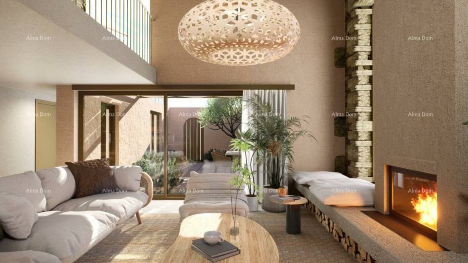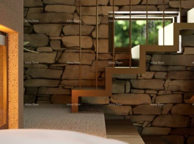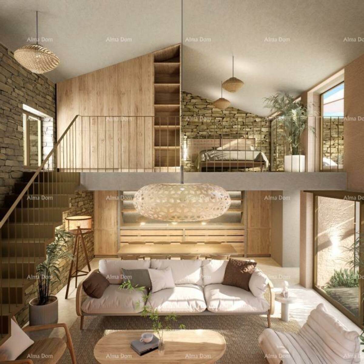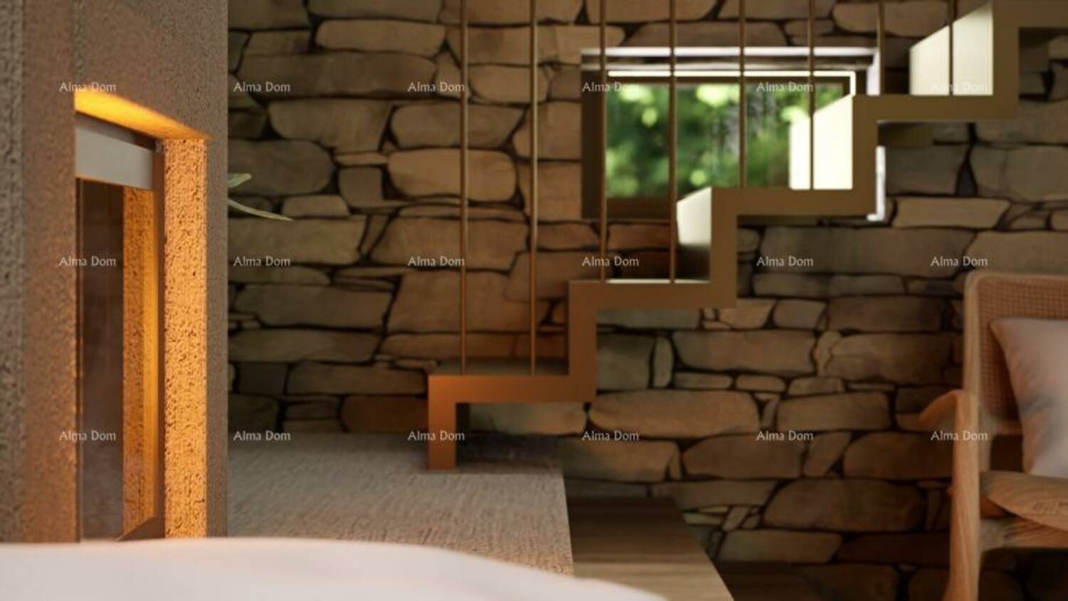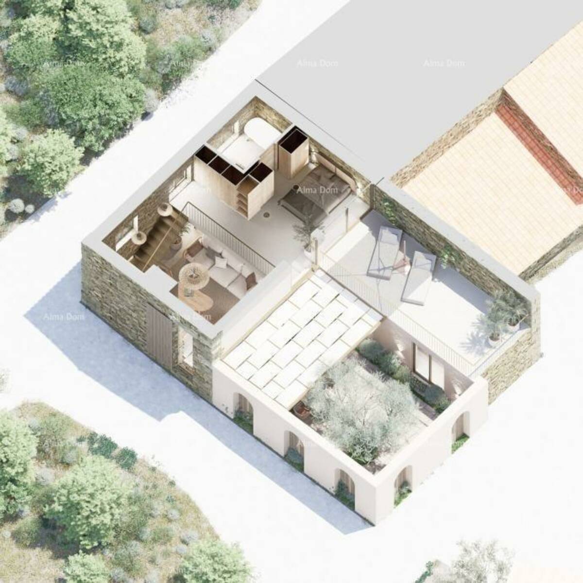 Prema projektu, vanjski izgled kuće zadržava autentični karakter tradicionalne istarske arhitekture, dok je interijer osmišljen u suvremenom i otvorenom konceptu, gdje se unutarnji i vanjski prostor prirodno nadopunjuju. U prizemlju je predviđen prostran open space dnevni boravak s kuhinjom i blagovaonicom, jedna spavaća soba i kupaonica. Gornju etažu čine otvorena galerija, dodatna kupaonica i terasa, a sve prostorije povezane su s unutarnjim dvorištem.