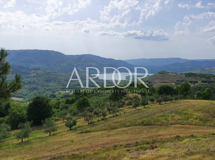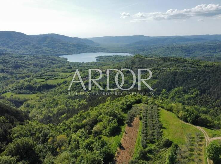 Lokacija odiše mirom i autentičnim istarskim šarmom, a sa zemljišta se pruža prekrasan panoramski pogled na jezero, vinograde i okolne brežuljke.