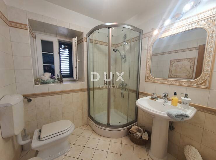 Kuća ima ukupnu stambenu površinu od 246 m2 raspoređenu na tri etaže udaljena 300m zračne linije od mora.