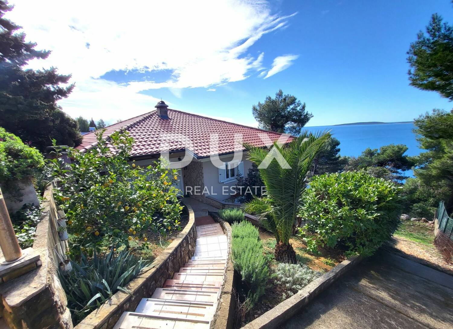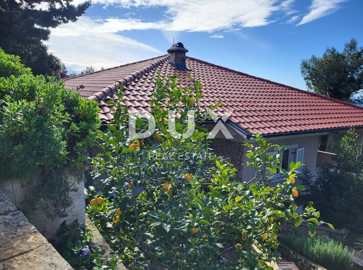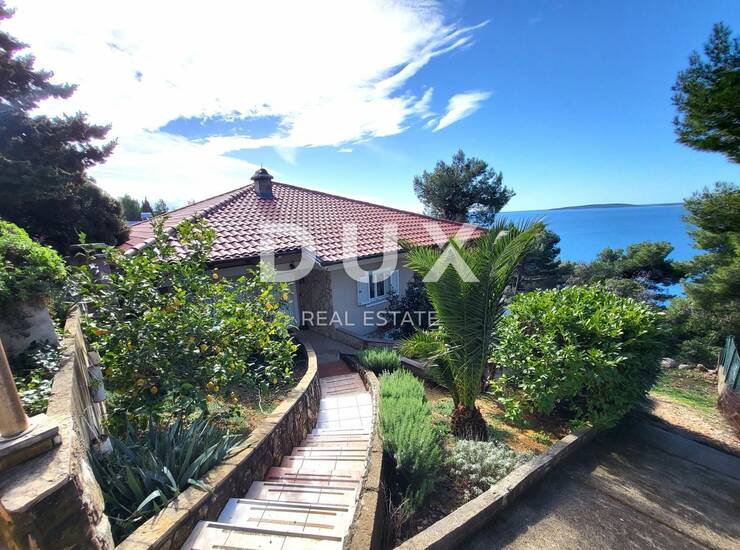 Na prodaju je samostojeća kuća s dva stana ukupne neto površine 175 m2. Stan u prizemlju neto površine 120 m2 sastoji se od kuhinje, blagovaonice, dnevnog boravka, 3 spavaće sobe i kupaonice. Dnevni dio i jedna spavaća soba imaju izlaz na prostranu natkrivenu terasu dimenzija 12x4 m s koje se pruža prekrasan pogled na more. Stan je klimatiziran, grijanje je na drva. U stanu se svakodnevno živi.