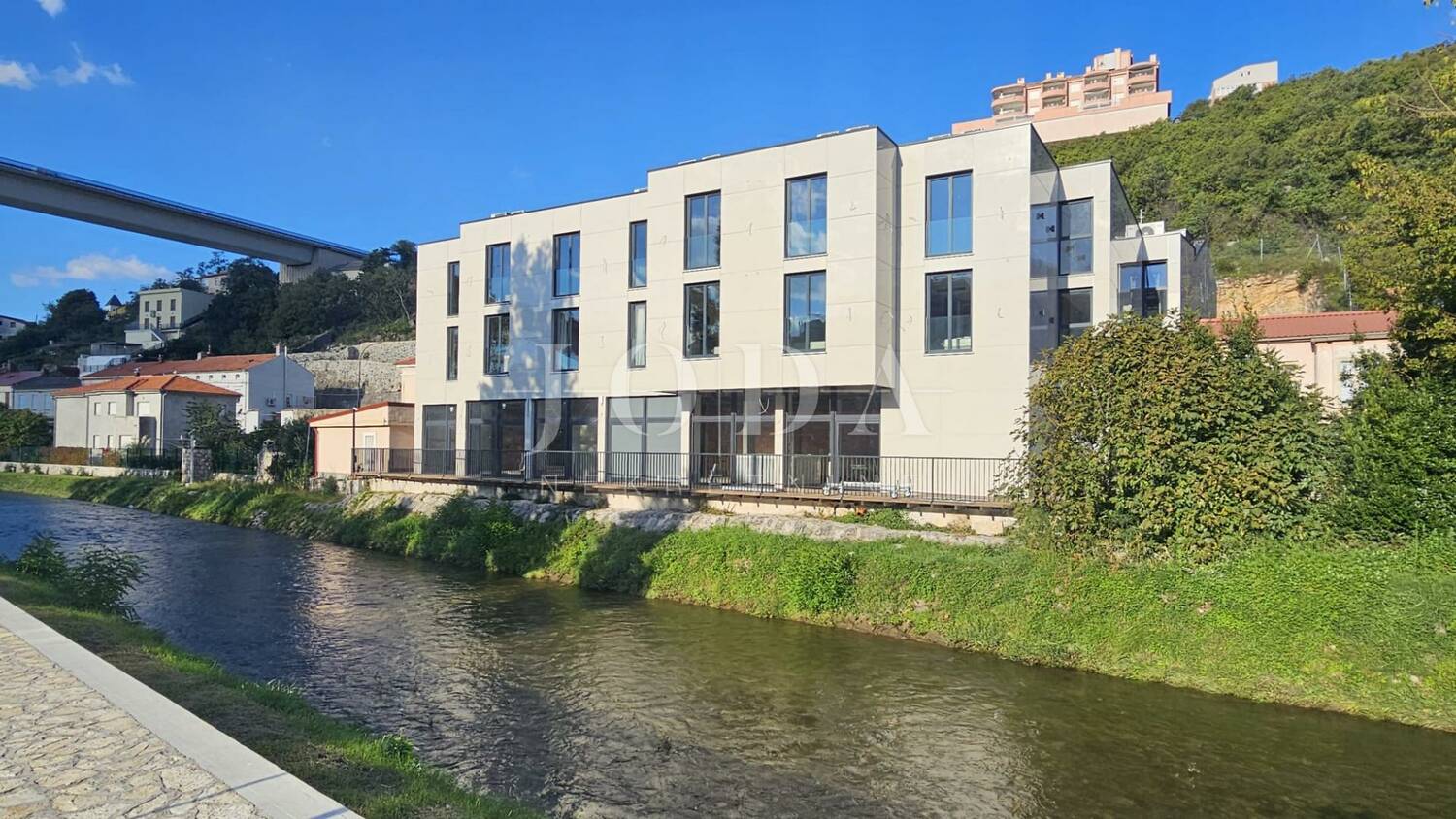 U samom srcu Crikvenice, uz samu rijeku koja daje poseban šarm gradu, nalazi se moderno projektirana zgrada s 30 luksuzno opremljenih apartmana veličine od 14 m² do 28 m². Ovaj projekt spaja savršen dizajn, vrhunsku opremu i atraktivnu lokaciju, nudeći jedinstvenu priliku za investiciju – s već uhodanim sustavom iznajmljivanja koji osigurava siguran povrat.