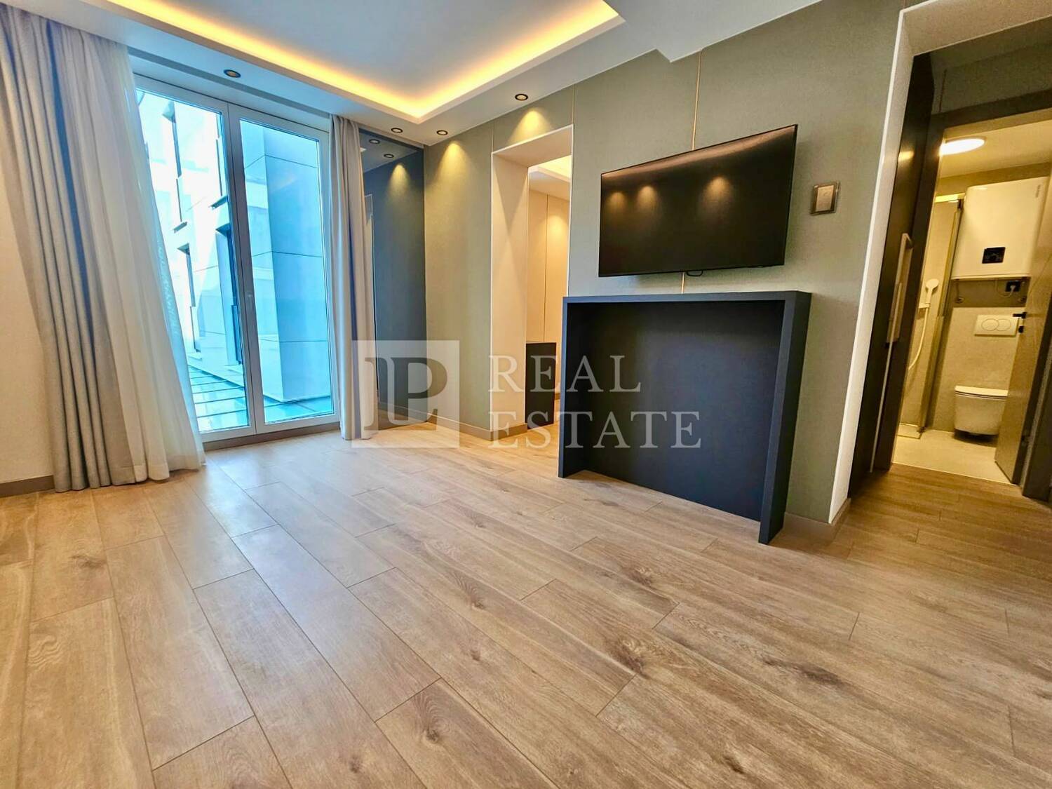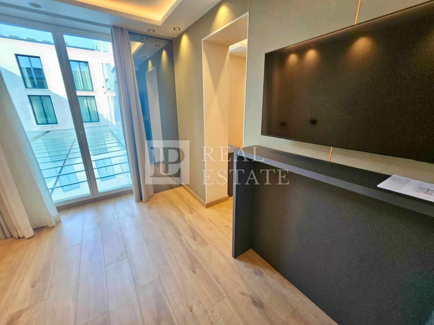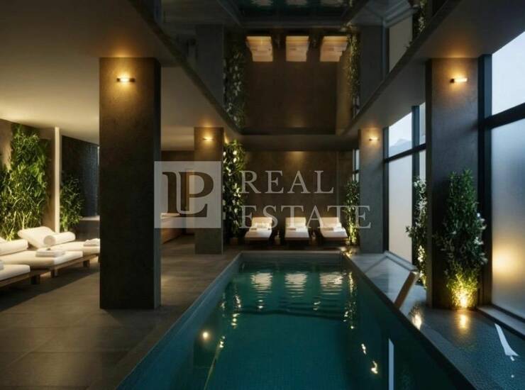 Modernost i elegancija interijera vidljivi su u detaljima poput: kupaonice s namještajem od Kerok materijala stopostotno otpornog na vodu i udarce, keramike velikog formata, mat bijelih sanitarija s zlatnim detaljima i protuprovalnih ulaznih vrata, a zaista poseban i ugodan ambijent pružaju spušteni stropovi s integriranom LED i indirektnom rasvjetom.