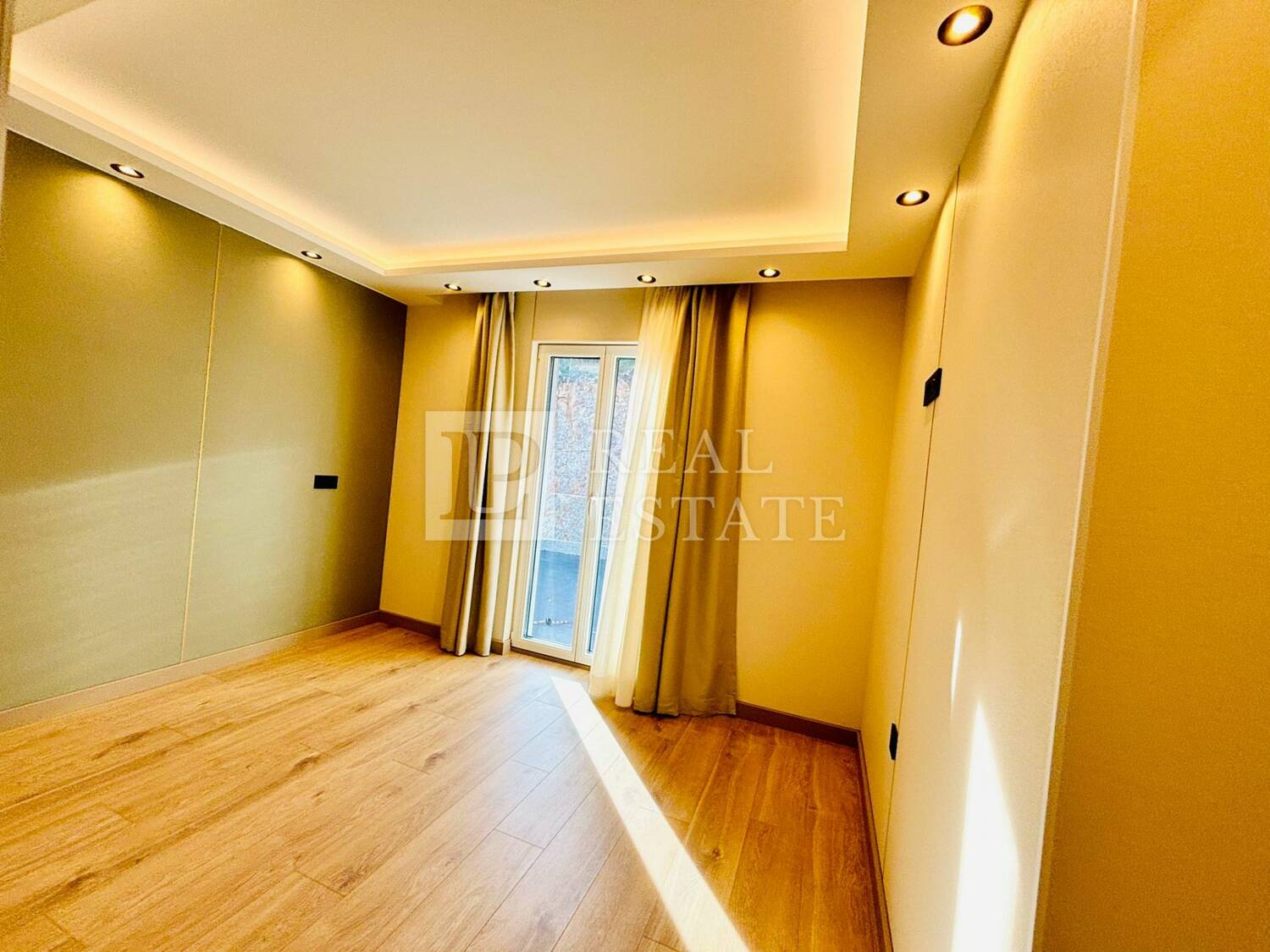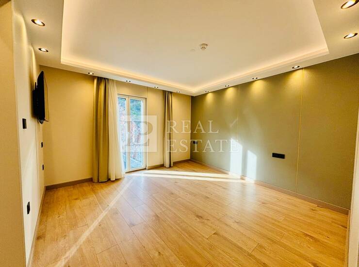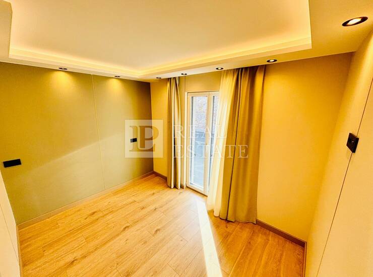 Modernost i elegancija interijera vidljivi su u detaljima poput: kupaonice s namještajem od Kerok materijala stopostotno otpornog na vodu i udarce, keramike velikog formata, mat bijelih sanitarija s zlatnim detaljima i protuprovalnih ulaznih vrata, a zaista poseban i ugodan ambijent pružaju spušteni stropovi s integriranom LED i indirektnom rasvjetom.