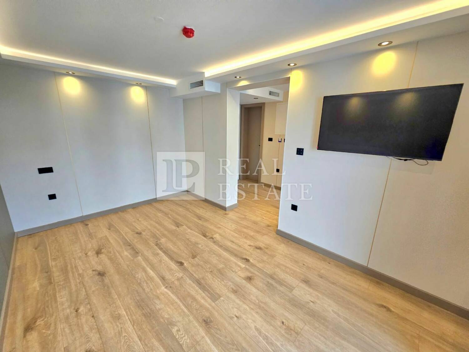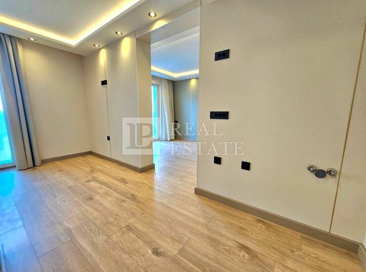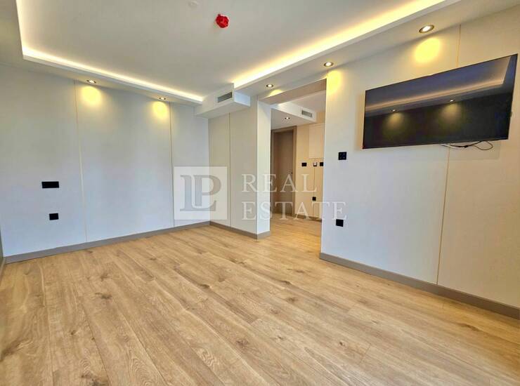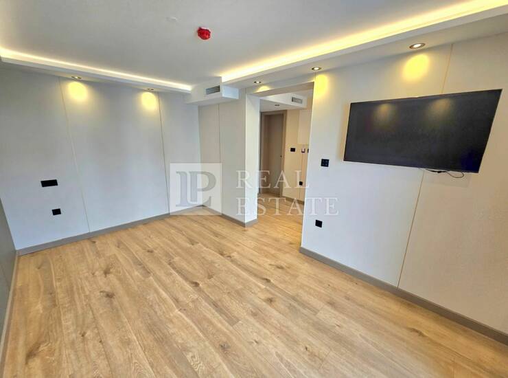Modernost i elegancija interijera vidljivi su u detaljima poput: kupaonice s namještajem od Kerok materijala stopostotno otpornog na vodu i udarce, keramike velikog formata, mat bijelih sanitarija s zlatnim detaljima i protuprovalnih ulaznih vrata, a zaista poseban i ugodan ambijent pružaju spušteni stropovi s integriranom LED i indirektnom rasvjetom.