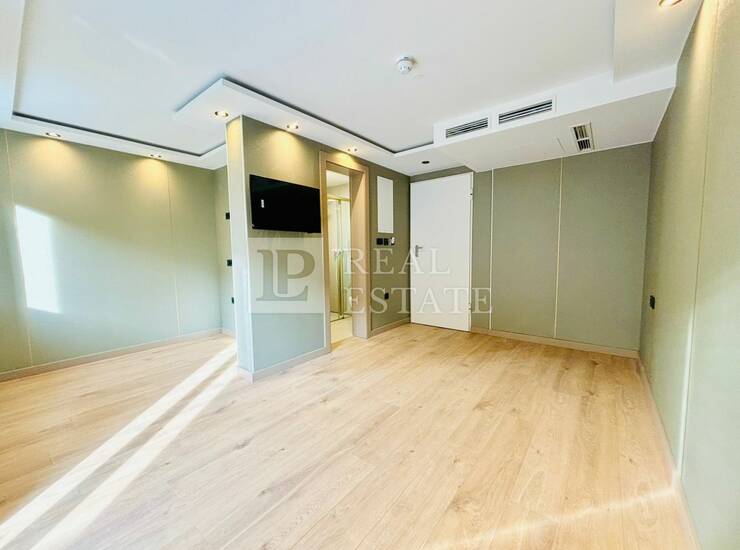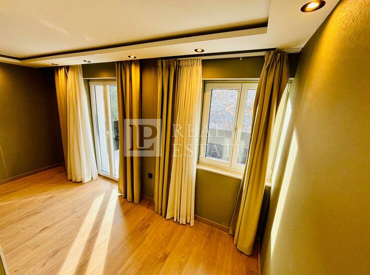 Modernost i elegancija interijera vidljivi su u detaljima poput: kupaonice s namještajem od Kerok materijala stopostotno otpornog na vodu i udarce, keramike velikog formata, mat bijelih sanitarija s zlatnim detaljima i protuprovalnih ulaznih vrata, a zaista poseban i ugodan ambijent pružaju spušteni stropovi s integriranom LED i indirektnom rasvjetom.