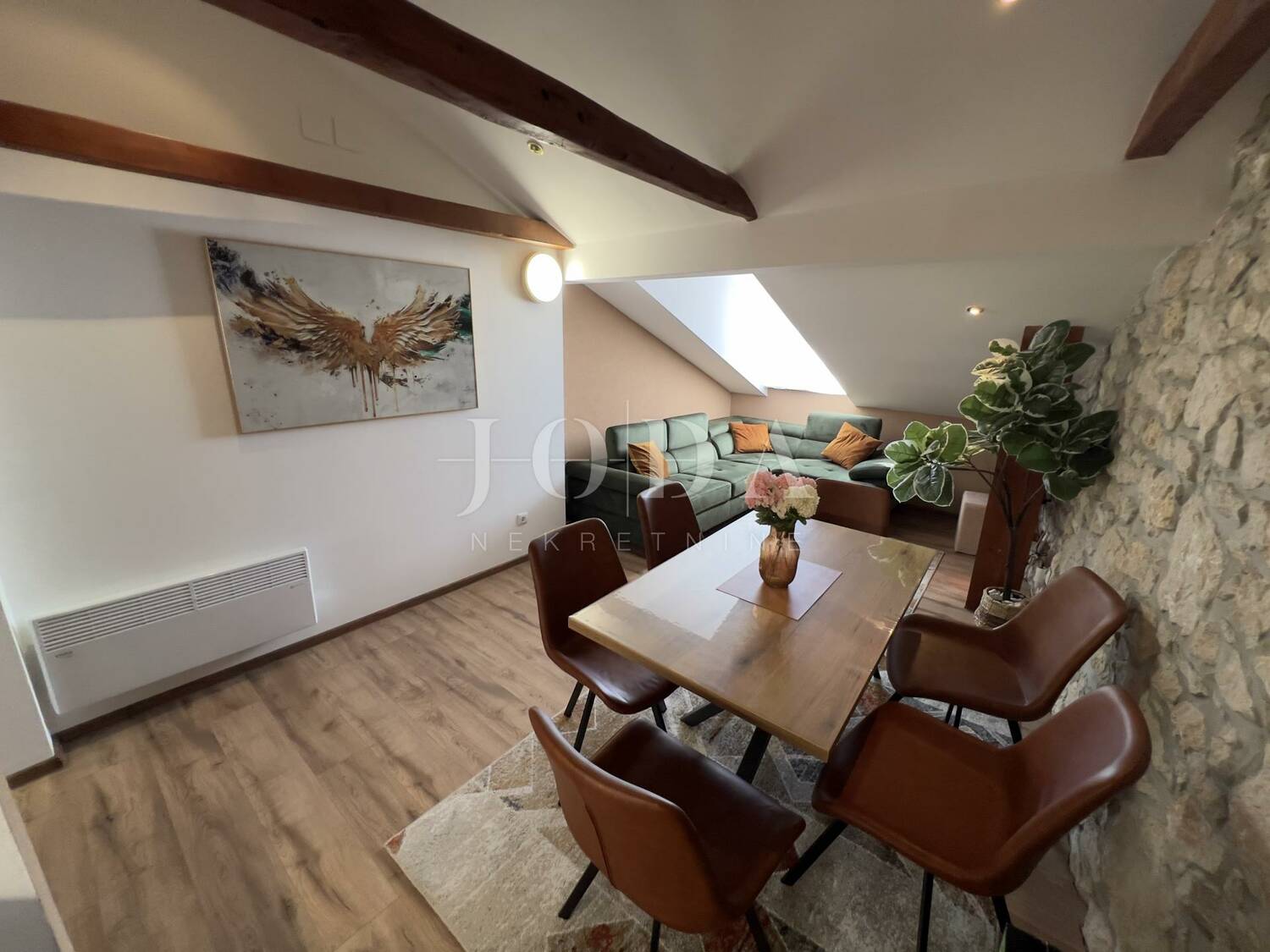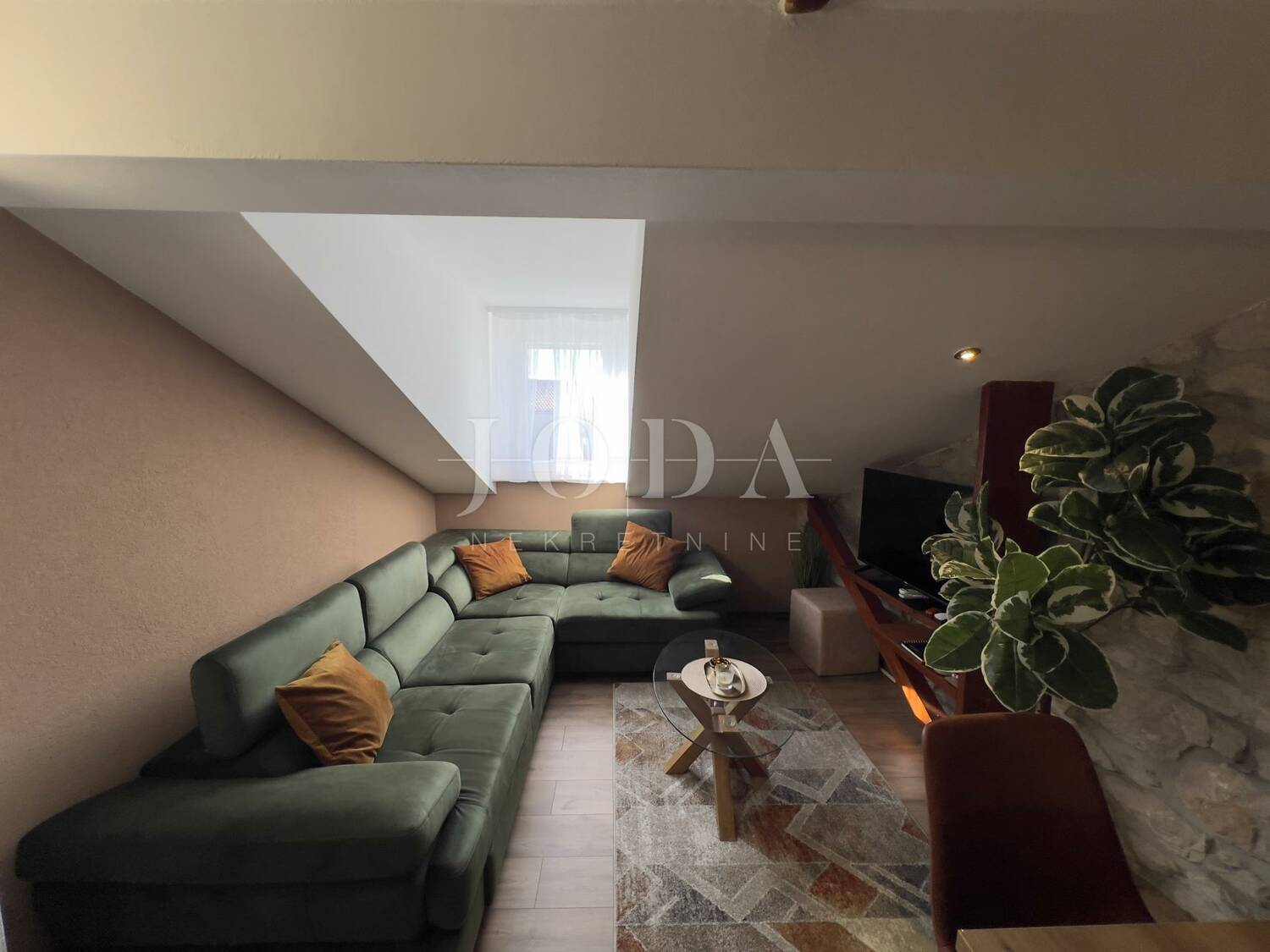 Stan je južne orijentacije te iako se nalazi u potkrovlju ima puno prirodne svjetlosti tijekom cijelog dana.