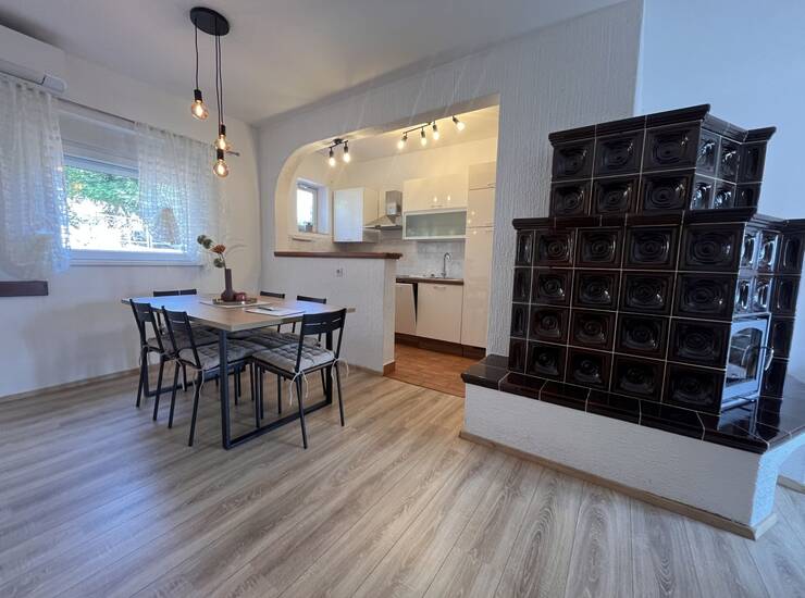 Na prodaju nudimo dvije kuće s izuzetnim potencijalom na atraktivnoj lokaciji u Crikvenici. Prva kuća je potpuno opremljena i trenutno se koristi kao apartman za iznajmljivanje. Ova nekretnina nudi vlastito dvorište s različitim zabavnim sadržajima. Apartman uključuje prostrani dnevni boravak, kuhinju i blagovaonicu u open space stilu, s izlazom na terasu koja pruža prekrasan pogled na more. Tu su i dvije velike spavaće sobe, kupaonica i ostava. Ograđeni dvorišni prostor sadrži roštilj, prostor za druženje i uređeni travnjak s pogledom na more. Nekretnina također posjeduje garažu i dovoljno parkirnih mjesta ispred nje za goste.