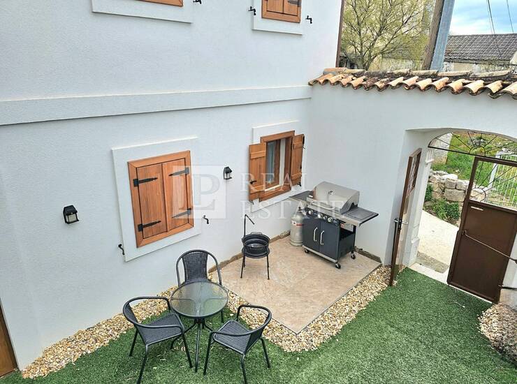 Unutar ograđene okućnice također se nalazi prostor za druženje te roštilj, a predivan pogled na more pruža se s gornje terase.