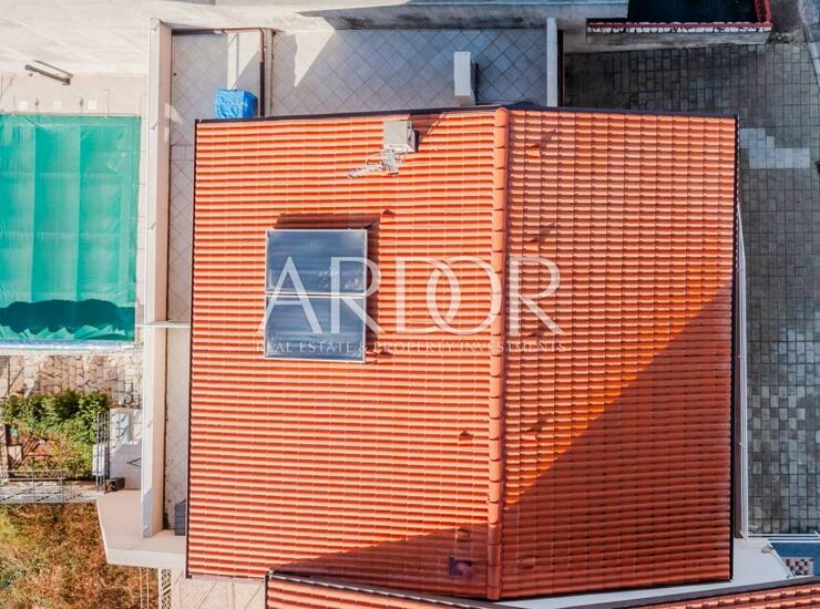 Na mirnoj lokaciji u Crikvenici, svega 900 metara hoda od mora i 1,4 km od centra grada, nalazi se prostrana kuća ukupne površine 352 m², raspoređena na prizemlje i dva kata. Nekretnina je okružena uređenom okućnicom s grijanim bazenom, vrtom i sedam parkirnih mjesta, uključujući jedno u garaži, pružajući pogodnosti za svakodnevni život i turistički najam.