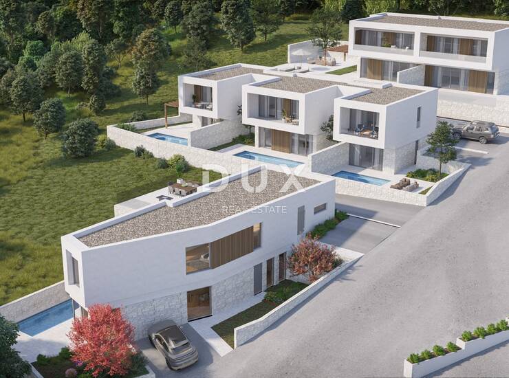 Na mirnoj i povišenoj lokaciji razvija se projekt suvremenih dvojnih kuća – ukupno sedam jedinica – osmišljen kroz pažljivo promišljenu arhitekturu, funkcionalan raspored i naglasak na kvalitetu življenja, uz otvoren pogled na more i grad. Povišena pozicija dodatno osigurava privatnost i mir, a svi ključni sadržaji Crikvenice ostaju brzo dostupni.