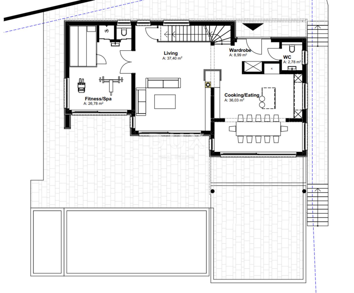Prodaje se moderna luksuzna kuća na atraktivnoj i mirnoj lokaciji udaljena manje od 2 km vožnje od Jadranske Magistrale.