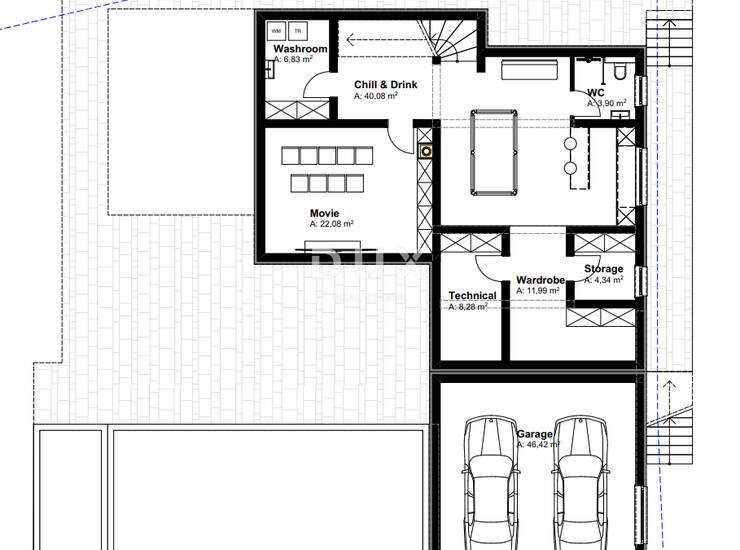 Sa činjenicom da posjeduje zatvorenu garažu od 45 m2 pogodna i za klijentelu koja posjećuje Hrvatsku obalu sa vozilima veće vrijednosti koji redovito uživaju u vožnji na Jadranskoj Magistrali (The Adriatic Highway) gdje su snimani mnogi promocijski video uradci kao npr. jedan važan za "Ferrari" brend "12Cilindri".