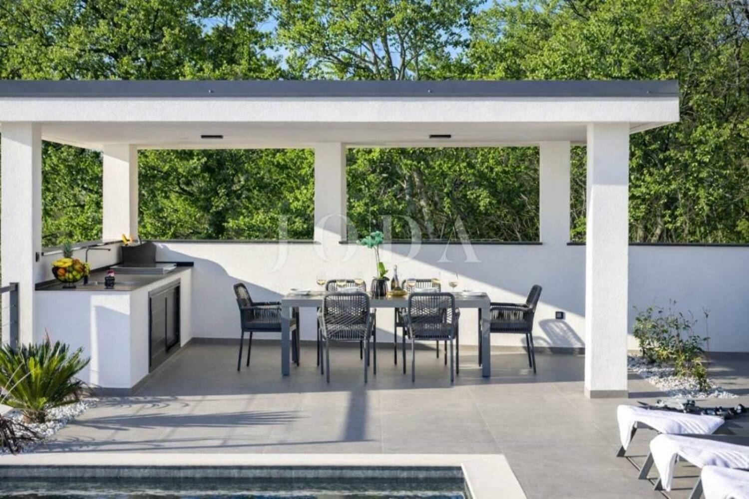 Prekrasne terase s bazenom i ljetnom kuhinjom – idealno mjesto za uživanje i druženje
