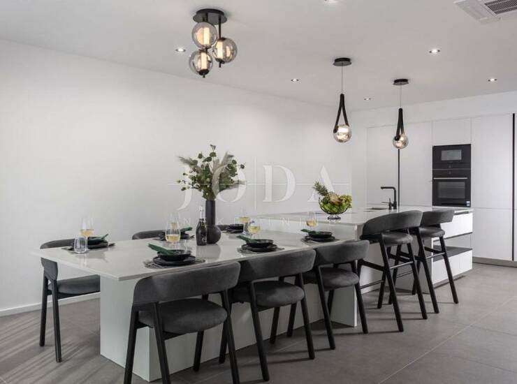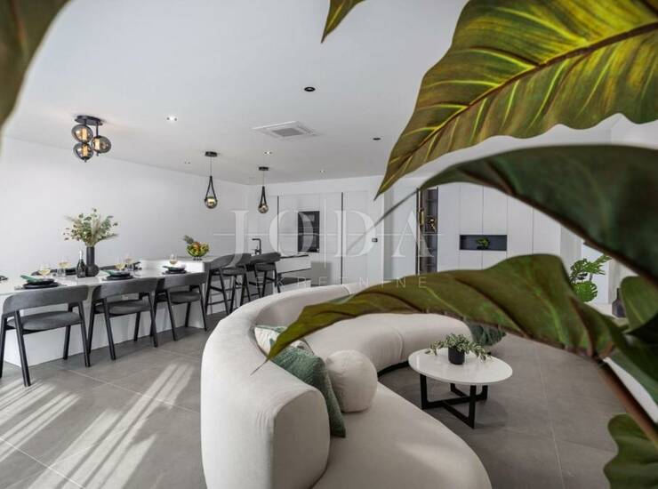 Vila je u potpunosti opremljena vrhunskim, modernim i kvalitetnim namještajem, spremna za useljenje bez dodatnih ulaganja.