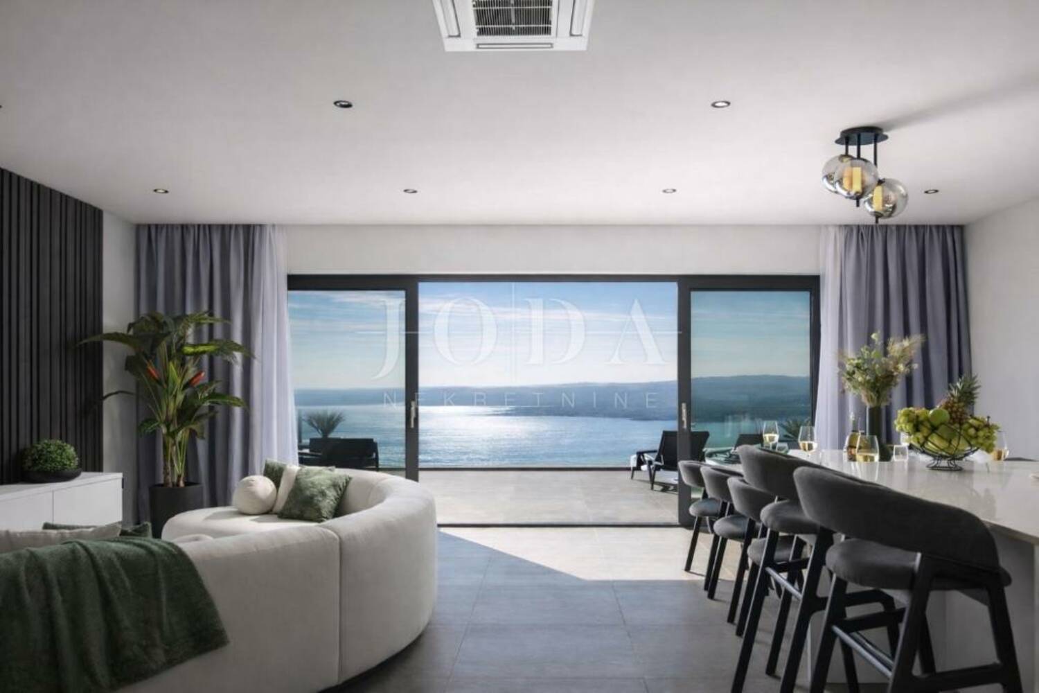 Iz dnevnog boravka izlazi se direktno na terasu s impresivnim panoramskim pogledom na more koji oduzima dah!