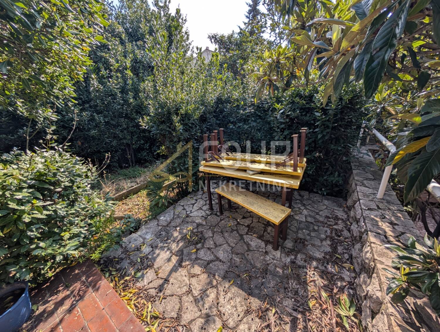 Okućnica je prostrana i ograđena, s osiguranim velikim brojem parkirnih mjesta (više od šest), što je značajna prednost u ovom području. Vrt