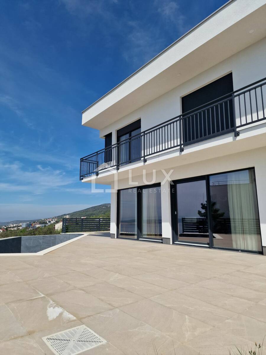 Sastoji se od prizemlja i kata, međusobno povezanih unutarnjim stepeništem. Sa svake etaže se pruža veličanstven pogled na more i otok Krk. U prizemlju se nalazi hodnik, kuhinja s blagovaonicom, dnevni boravak, gostinjski WC, uz jednu spavaću sobu s kupaonicom. Na katu se nalaze četiri spavaće sobe, svaka sa svojom kupaonicom, kao i spremište, te vešeraj. Na katu se također nalazi terasa cijelom širinom vile. Iz dnevnog boravka u prizemlju je omogućen izlaz na natkrivenu terasu, direktno povezanom sa sunčalištem uz infinity bazen s prekrasnim pogledom na more. Vilu krasi i garaža s dovoljno mjesta za dva automobila, te uređena okućnica.