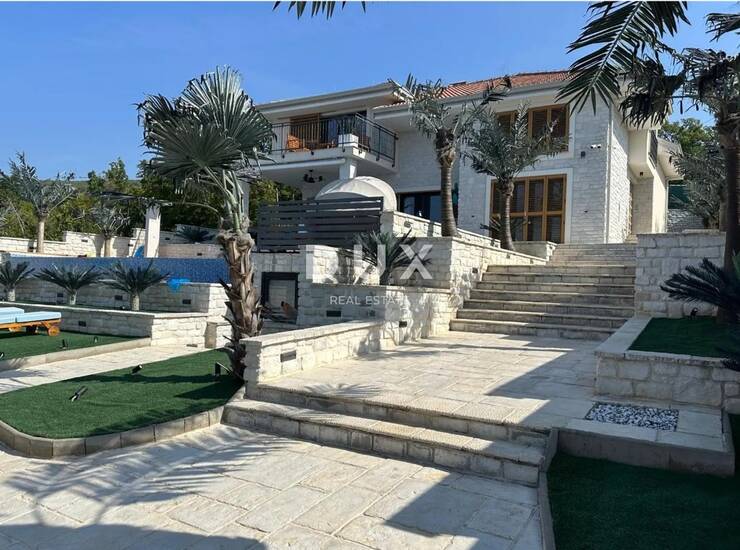 Unutrašnjost je uređena s mnogo pažnje i luksuza – otvoreni dnevni prostor sa staklenim stijenama povezuje blagovaonicu i modernu kuhinju s vanjskom terasom i bazenom od 50 m², dok pet prostranih spavaćih soba, svaka s vlastitom kupaonicom, jamče komfor i privatnost.