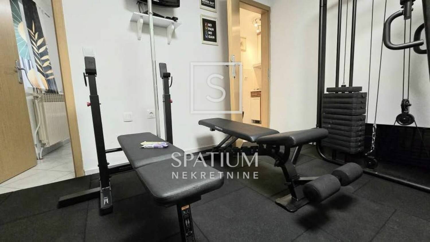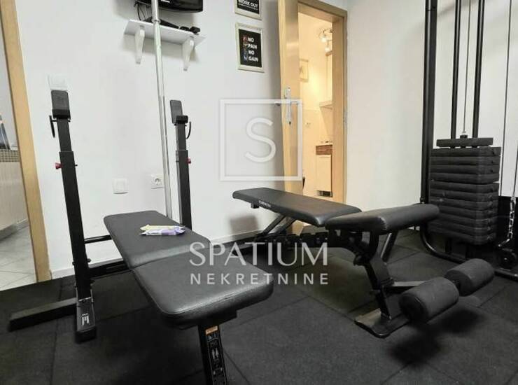 Prizemlje: opremljena teretana, prostor za druženje s biljarom, čajna kuhinja, kupaonica i kotlovnica.
