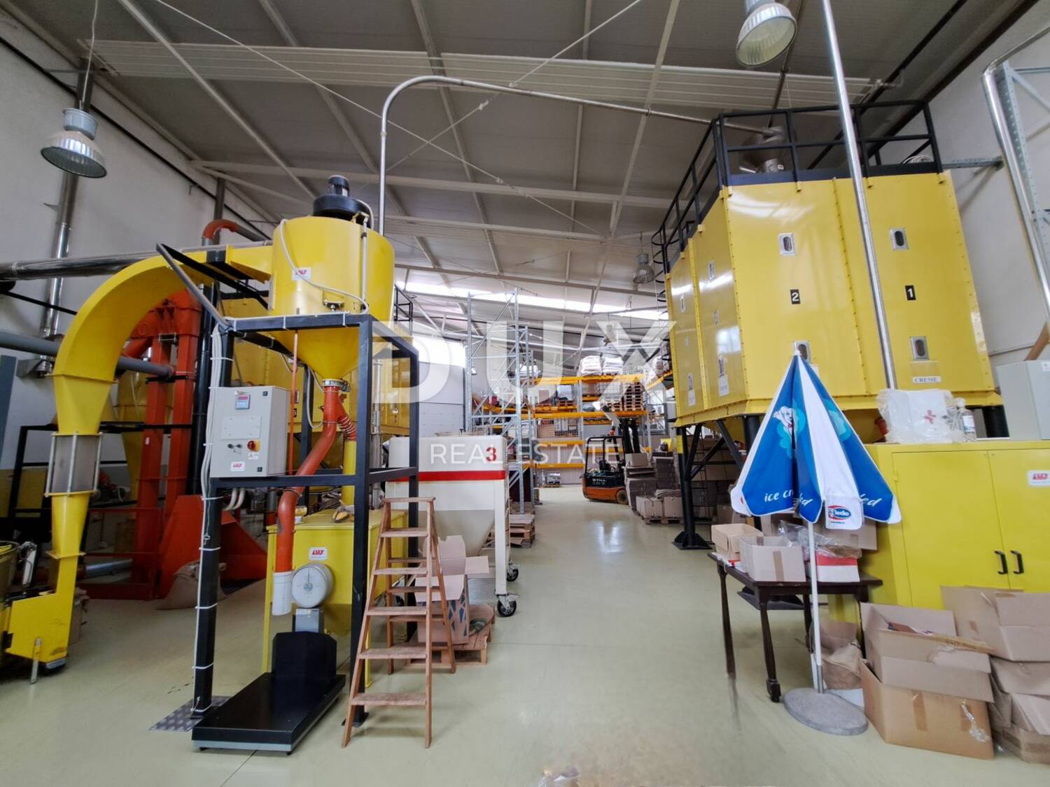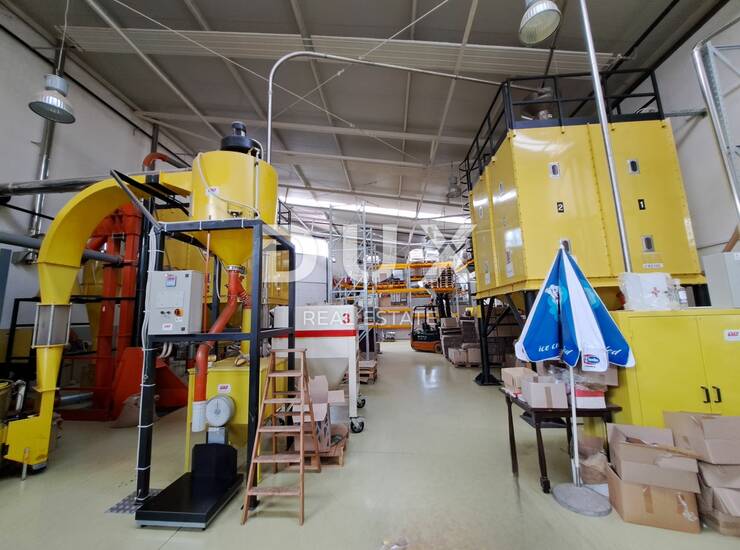 Ukupna korisna površina ovog kompleksa, koji se sastoji od DVIJE VELIKE HALE (470 i 500 m2), UREDA, GOSPODARSKE PROSTORIJE TE APARTMANA S POGLEDOM NA KATU, iznosi približno 1.300 m².