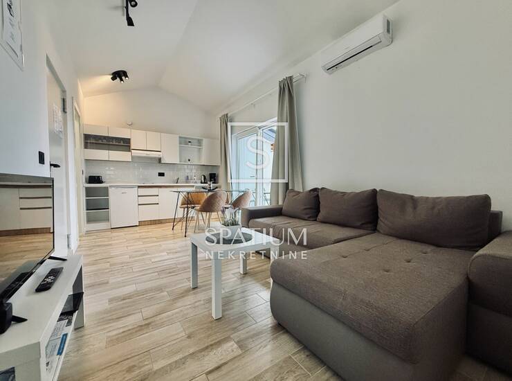 CRIKVENICA, u ponudu smo dobili 4 zasebna apartmana koji se prodaju kao cjelina u novoizgrađenoj zgradi iz 2023. godine, stambene površine 162.1 m2. Svaki apartman ima površinu od 40.5 m2, a sastoje se od ulaznog hodnika, dnevnog boravka s blagovaonicom i kuhinjom, spavaće sobe, kupaonice i natkrivenog balkona s pogledom na more. Apartmanima pripada ostava, zajedničko stubište, dva parkirna mjesta, jedan nenatkriveni balkon i zajednički bazen na korištenje s kojeg se pruža panoramski pogled. Prodaju se kompletno namješteni, opremljeni i klimatizirani. Kategorizirani su i u funkciji uhodanog turističkog najma.