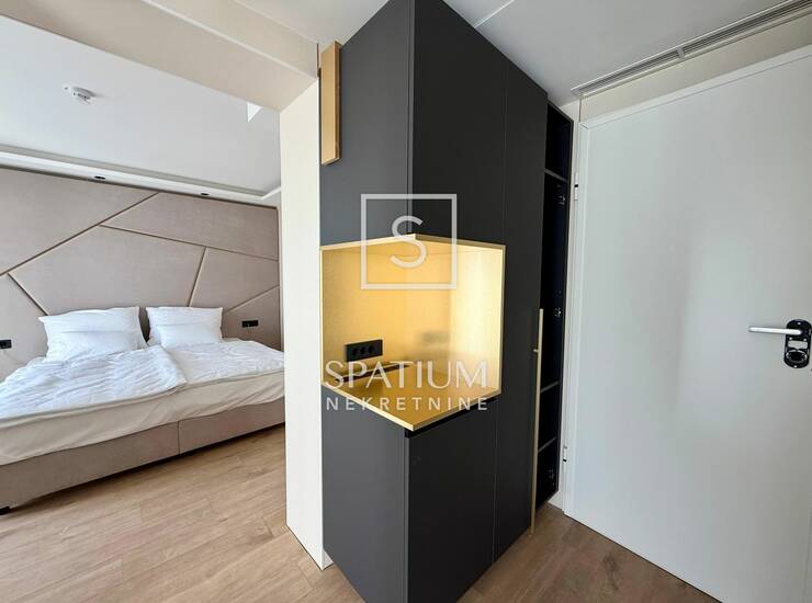 Pažljivo birani detalji, kvalitetni materijali, indirektna rasvjeta, dekorativne zidne obloge, keramika, lakirana unutarnja vrata s magnetskom bravom, kvalitetan namještaj, kupaonski namještaj otporan na vodu i udarce, duple zavjese, kao i ostala oprema ovu nekretninu čine elegantnom i ugodnom za boravak.