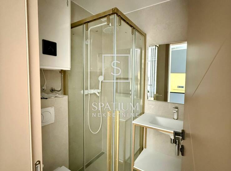 Odlično iskorišten prostor površine 27,08m2, sastoji se od dnevnog boravka, sobe i kupaone. Postoji mogućnost kupnje parkirnog mjesta.