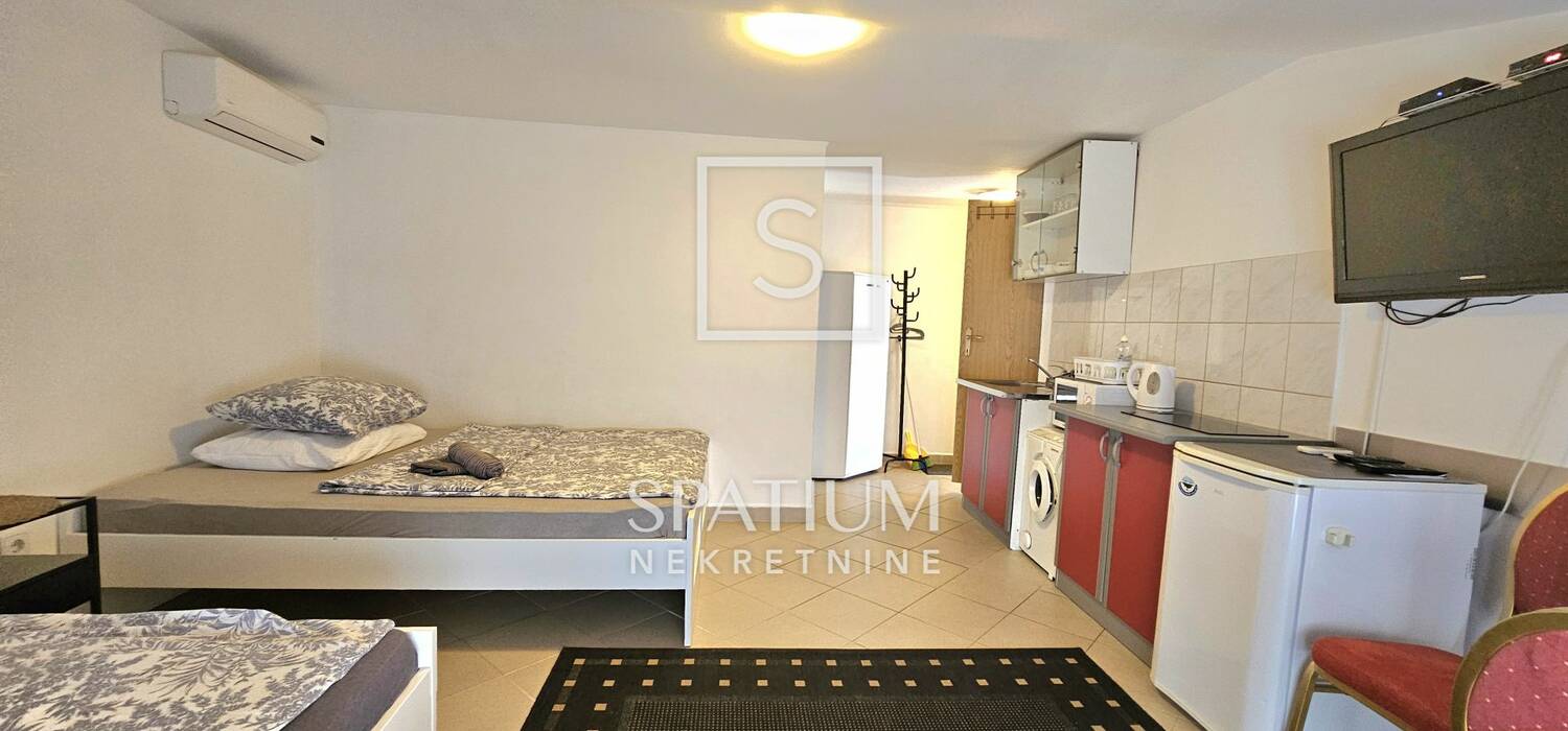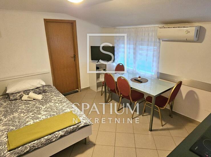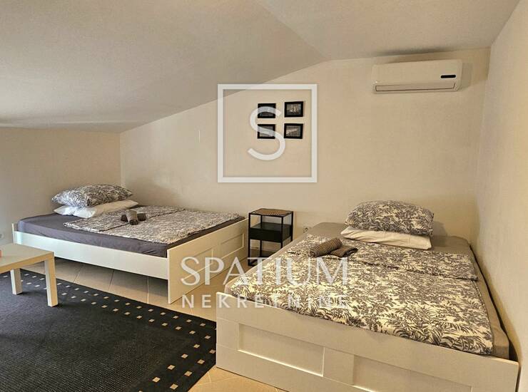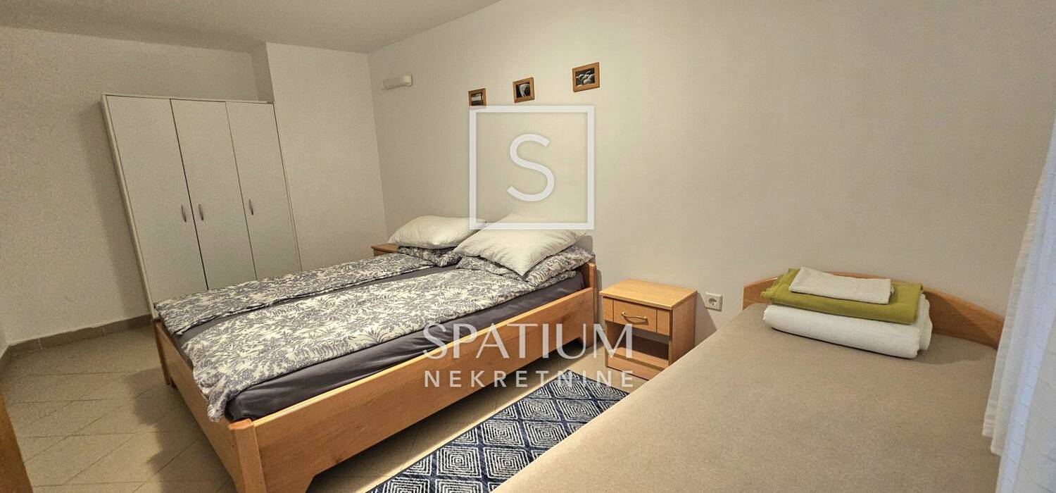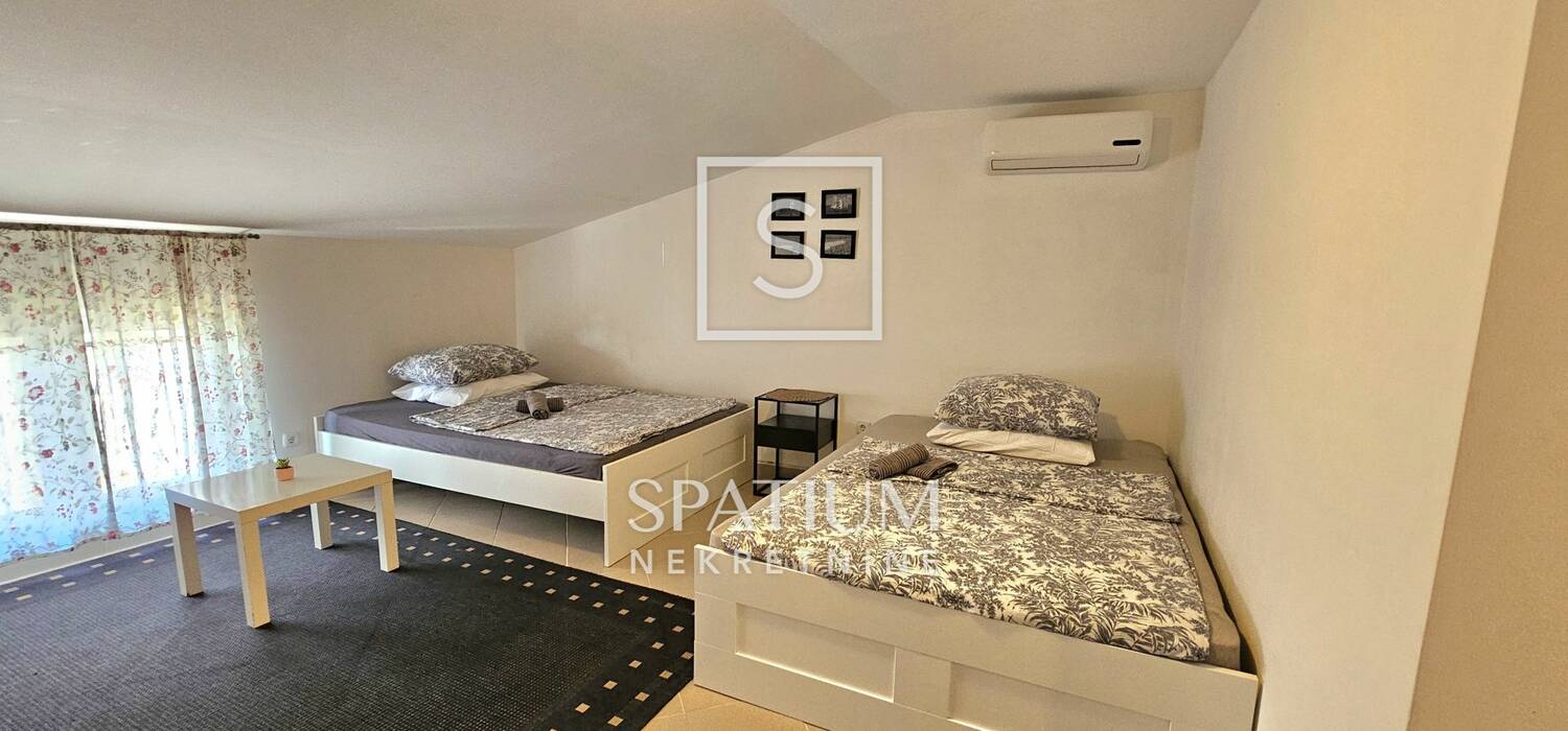 Zbog svoje lokacije i koncepta prostora, ova nekretnina je prilika za investiciju u turističku djelatnost ili uz potrebne preinake obiteljski stan za cjelogodišnji boravak.