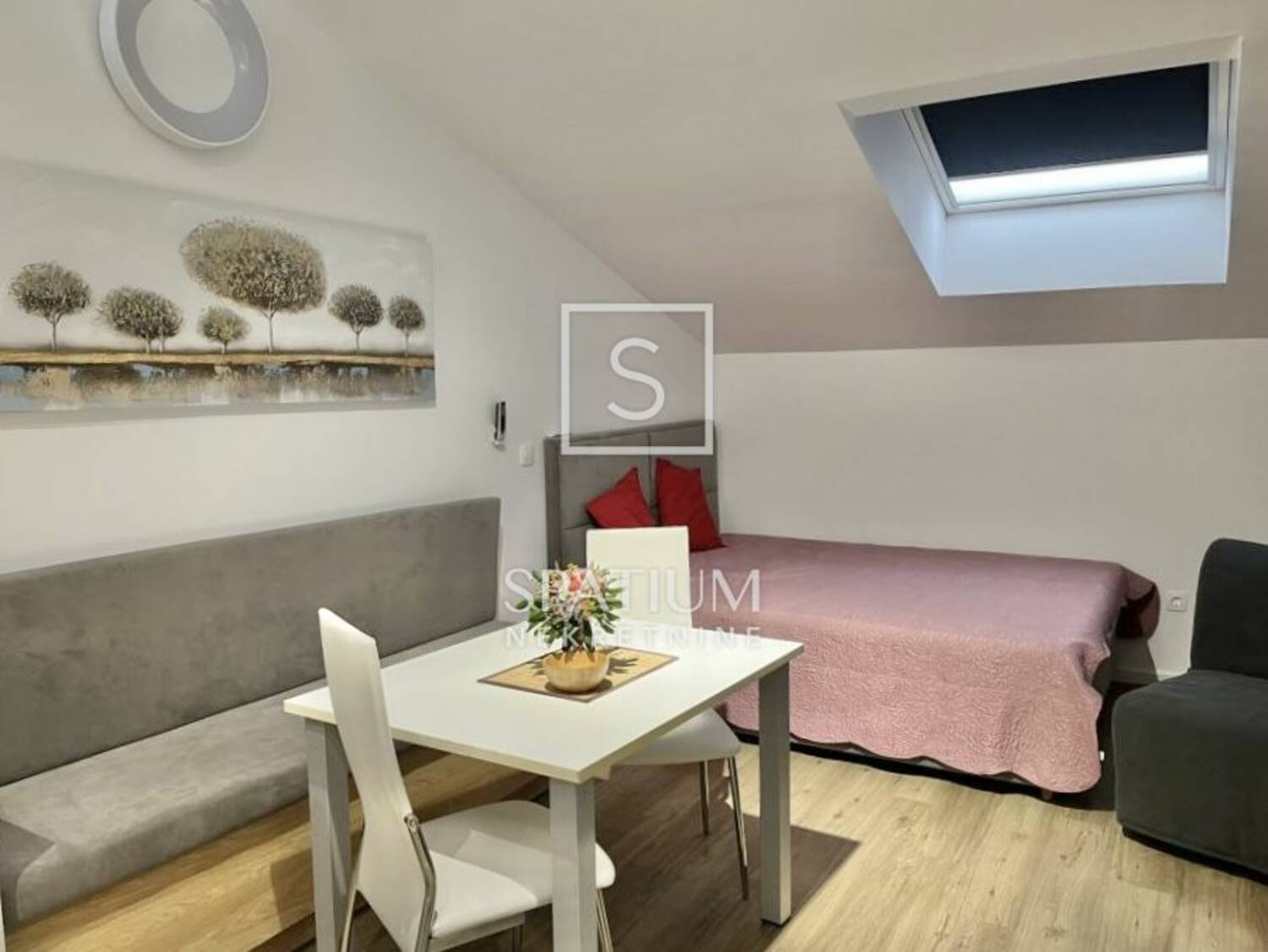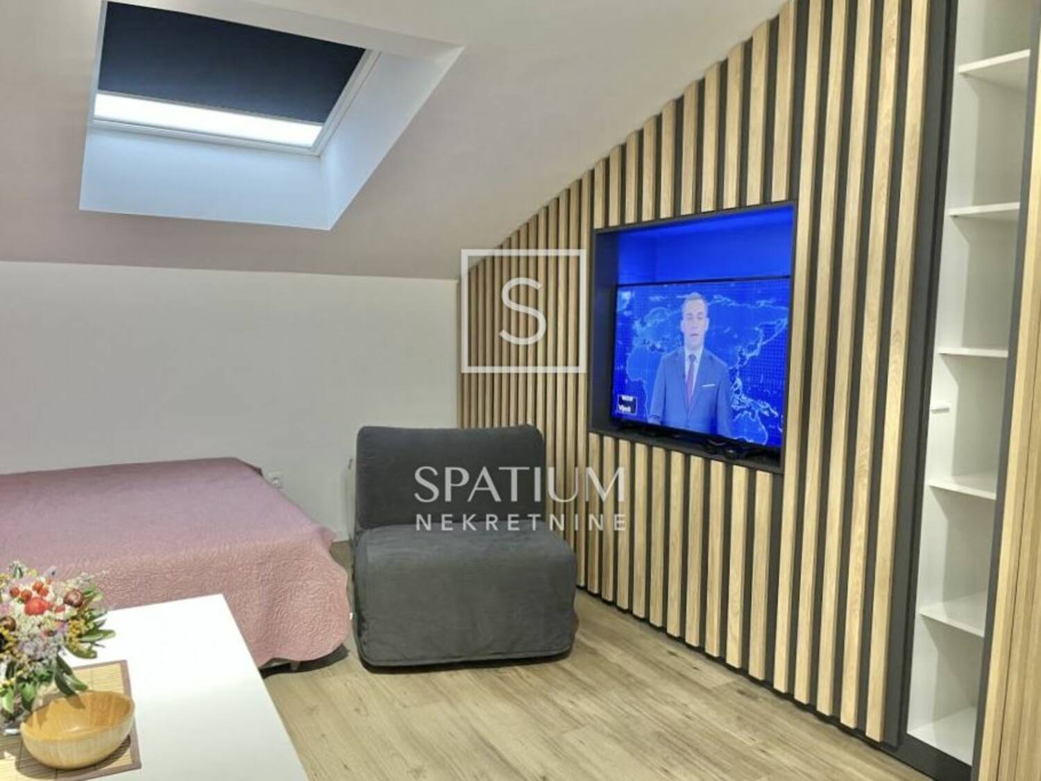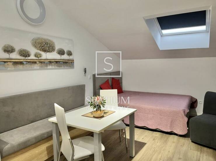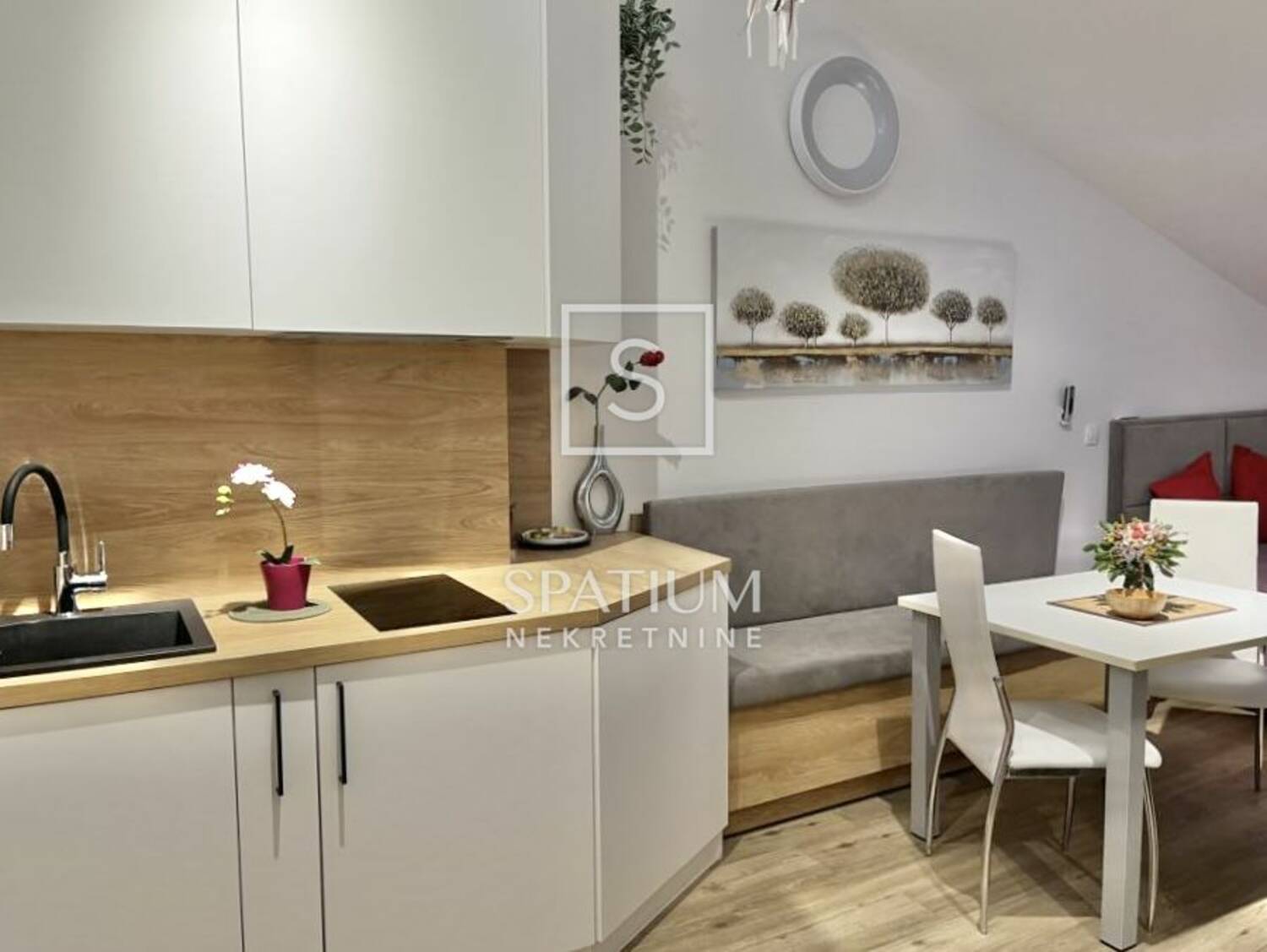 Prostor je dizajnerski uređen s naglaskom na funkcionalnost i estetiku, a po mjeri izrađeni ormari maksimalno iskorištavaju prostor uz moderan i elegantan izgled. Apartman se prodaje u potpunosti namješten.
